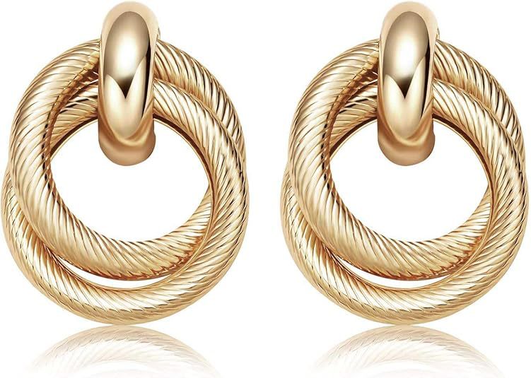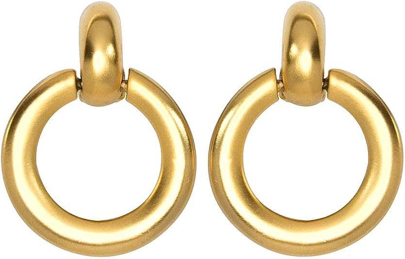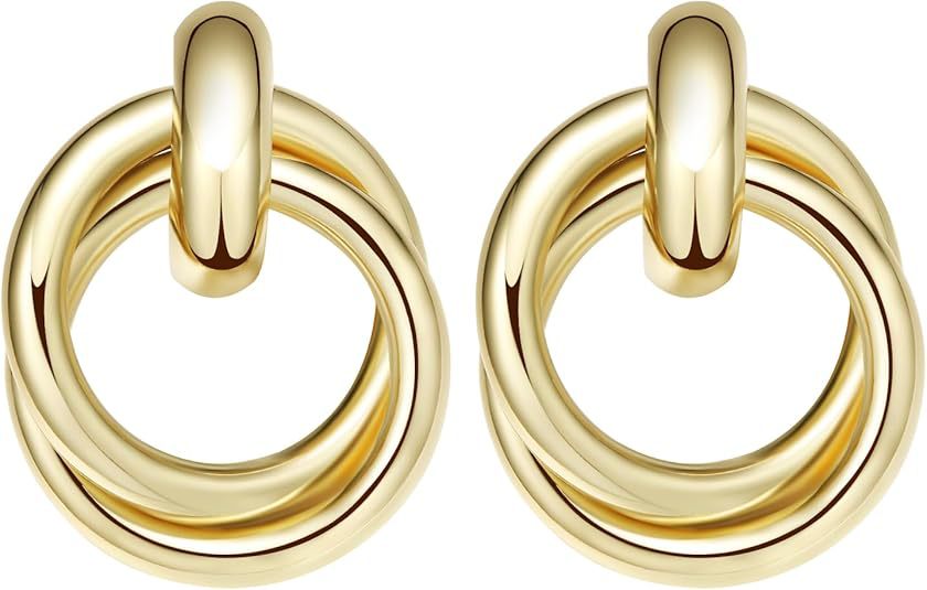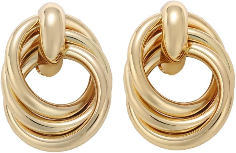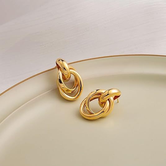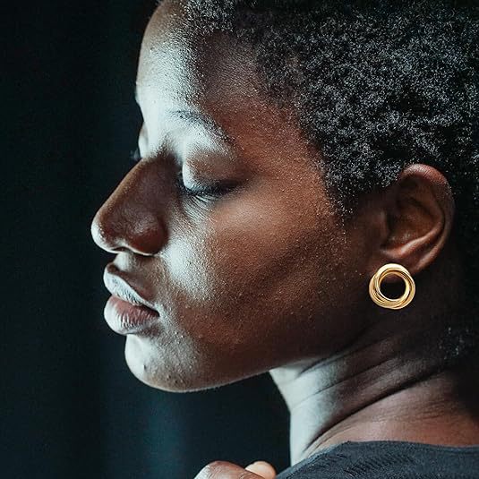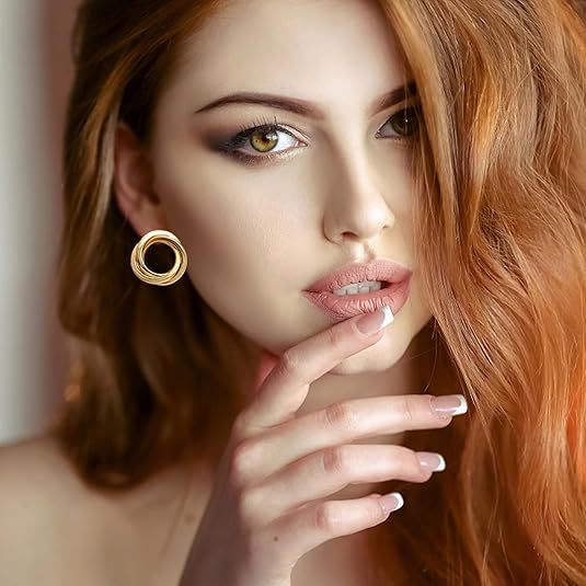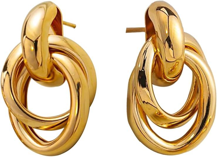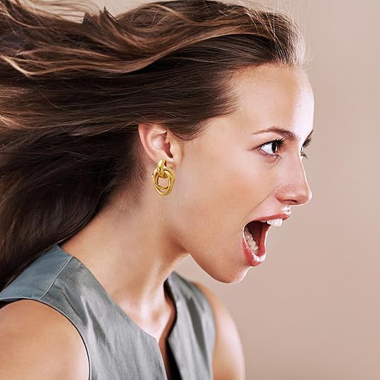 Cross-Border Hot Selling Three-Line Ring Stainless Steel Gold Earrings Simple Temperament Retro Women's Earrings Ready for Sale