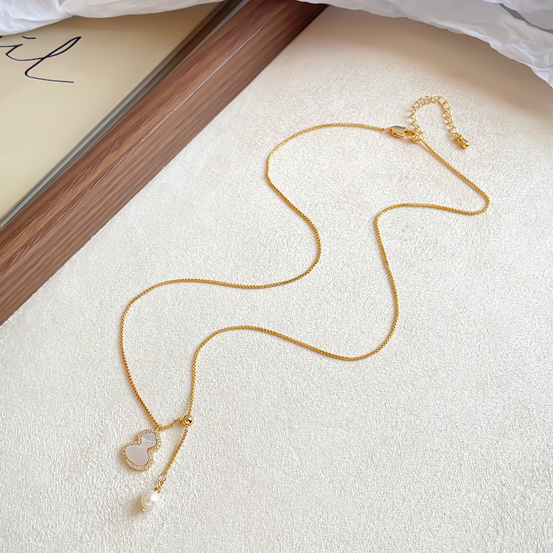 Color: [copper plated with 18k real gold + inlaid zircon + freshwater pearl]: nl09747e