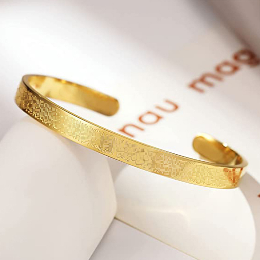 Cross-Border Titanium Steel Simple and Fashionable English Lettering Cuff Bracelet Gold Couple Open C-Shaped Titanium Steel Bracelet Versatile
