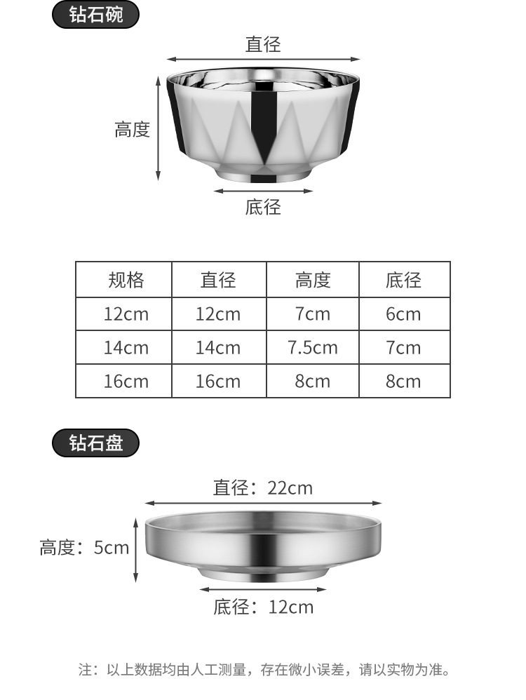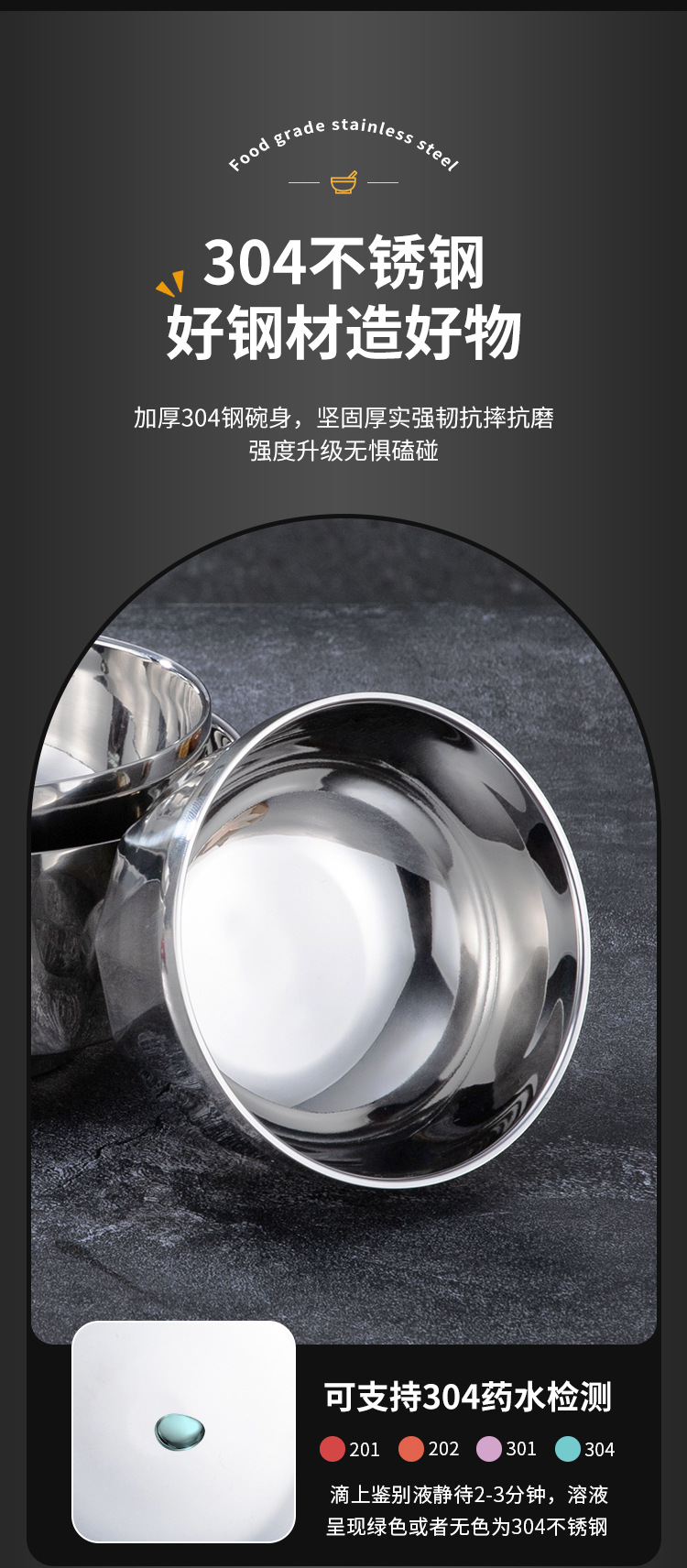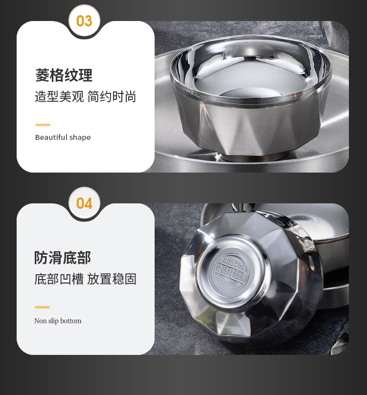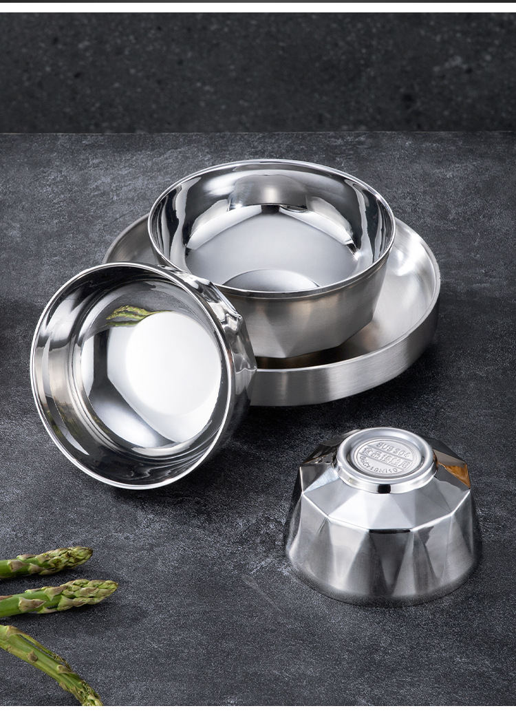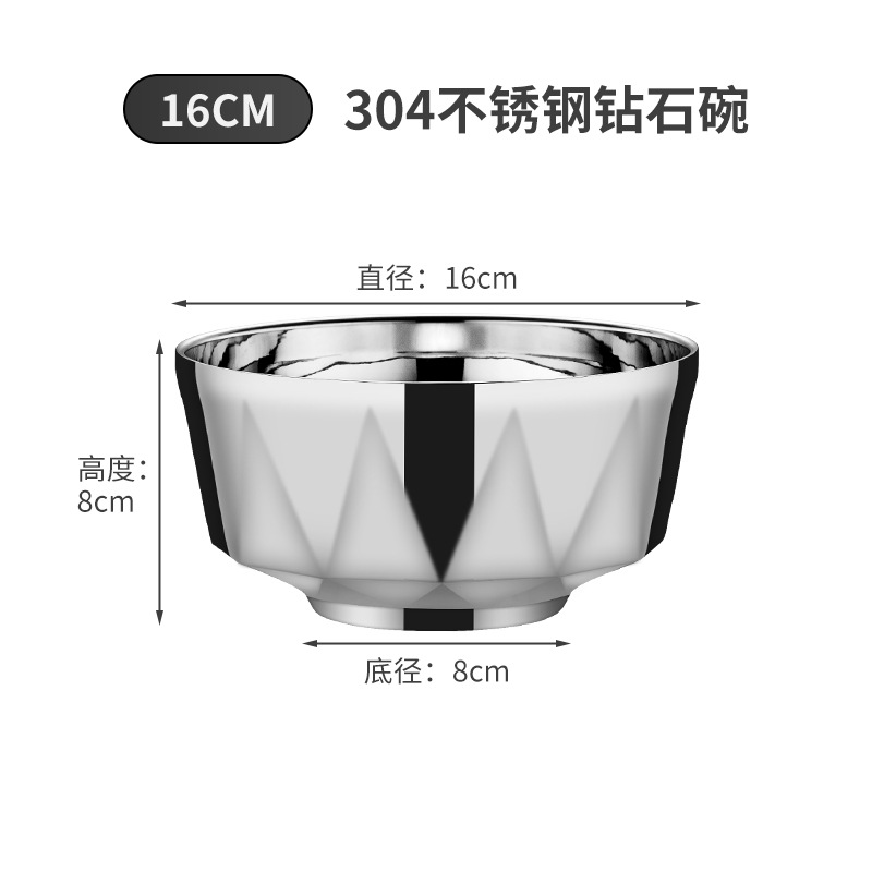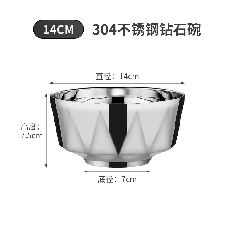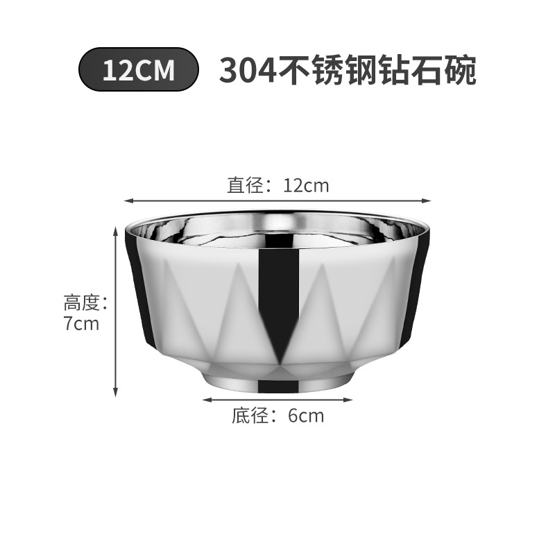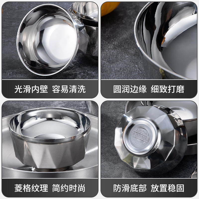 304 Stainless Steel Bowl for Girls, Rice Bowl, Small Bowl, Yogurt Bowl, Noodle Bowl, Kimchi Dish, Tableware Set with Diamond Texture