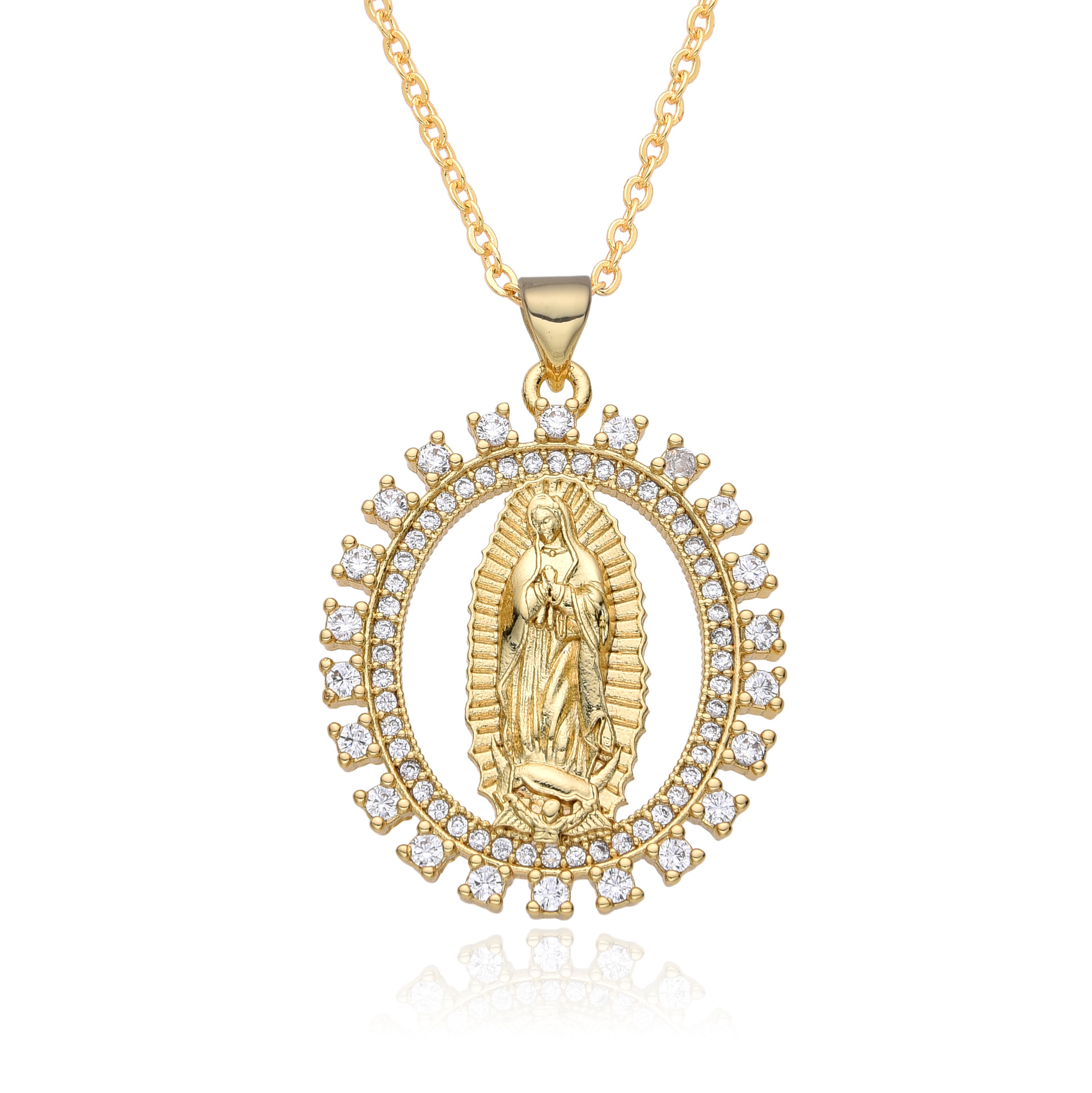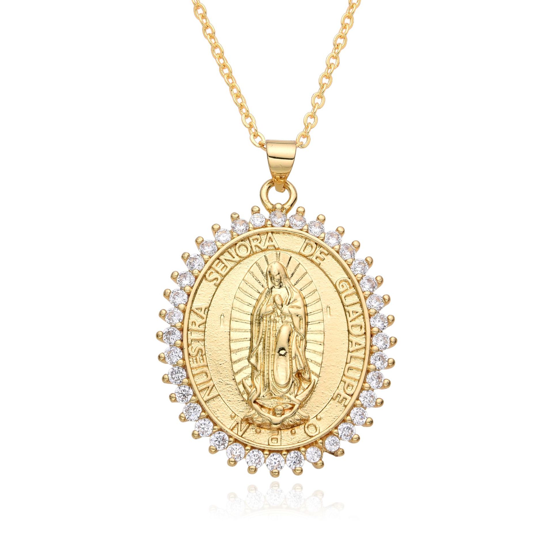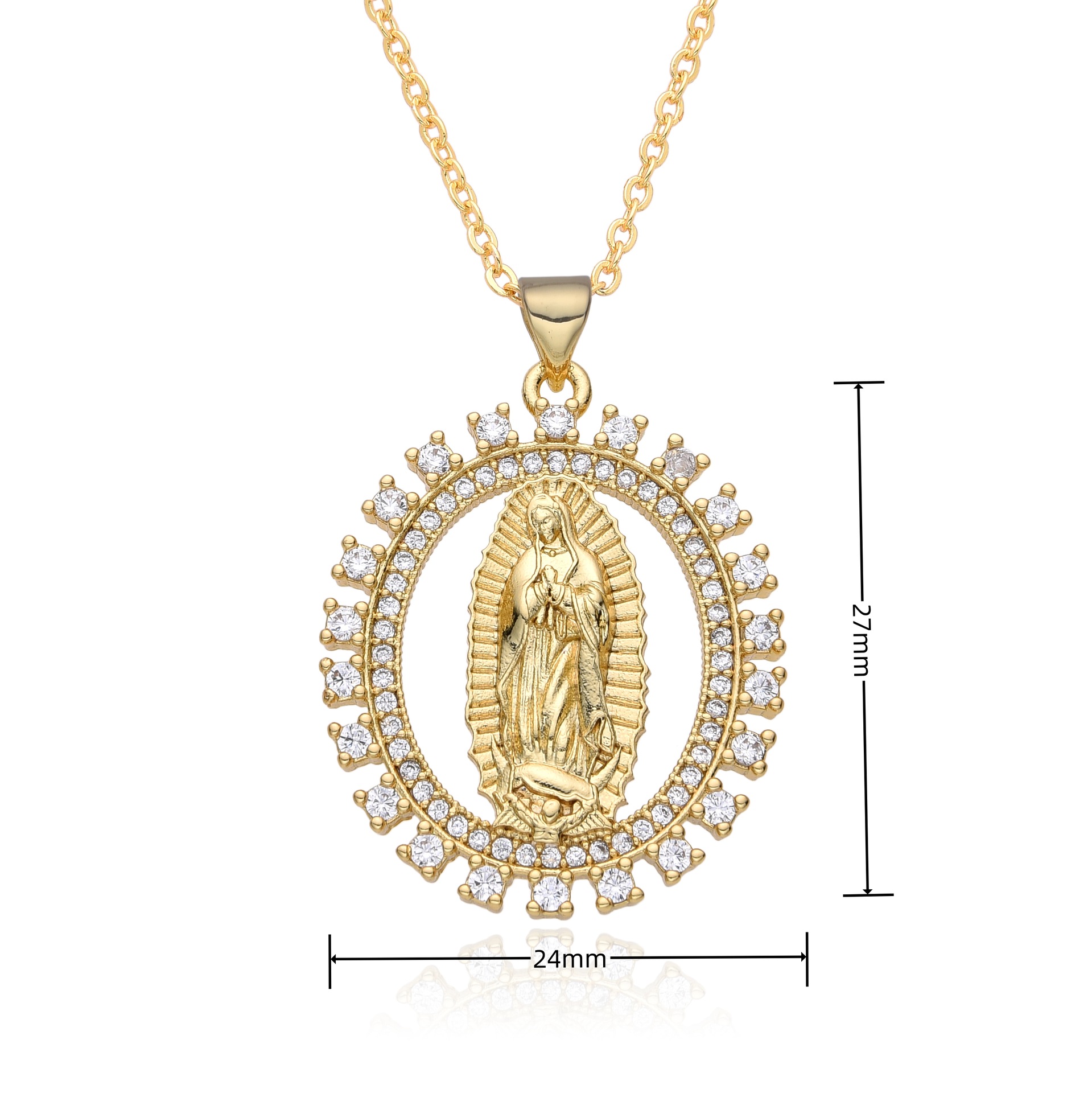 European and American Cross-Border Religious Personalized Statue Clavicle Chain Zircon Environmentally Friendly Copper Material Pendant Necklace Copper Plated 18Kf020