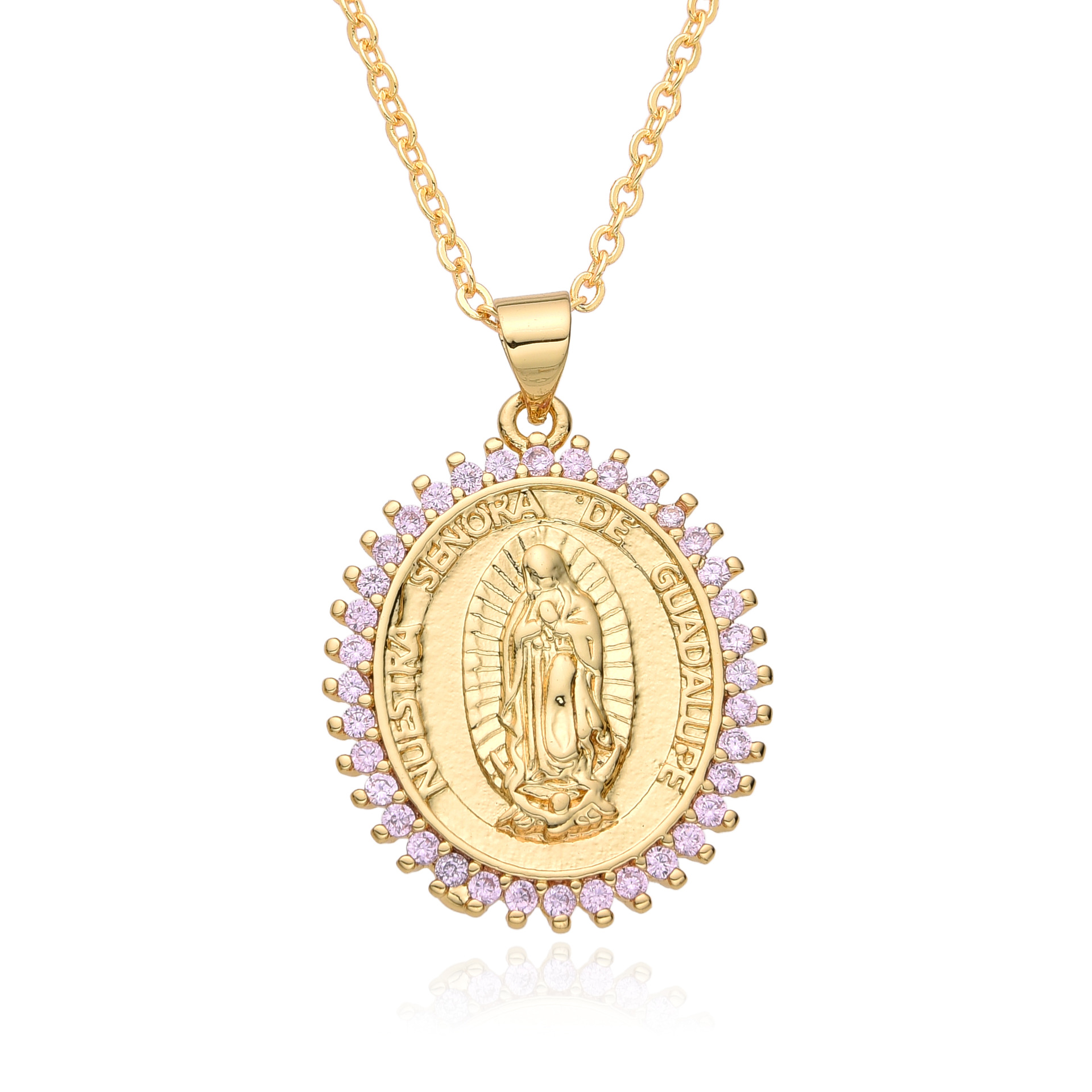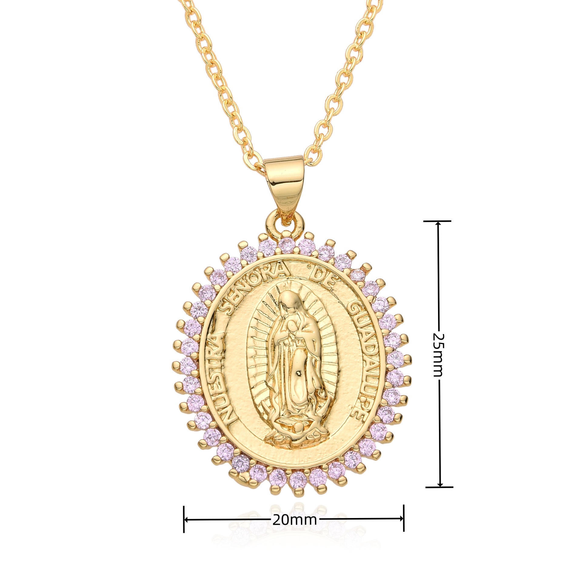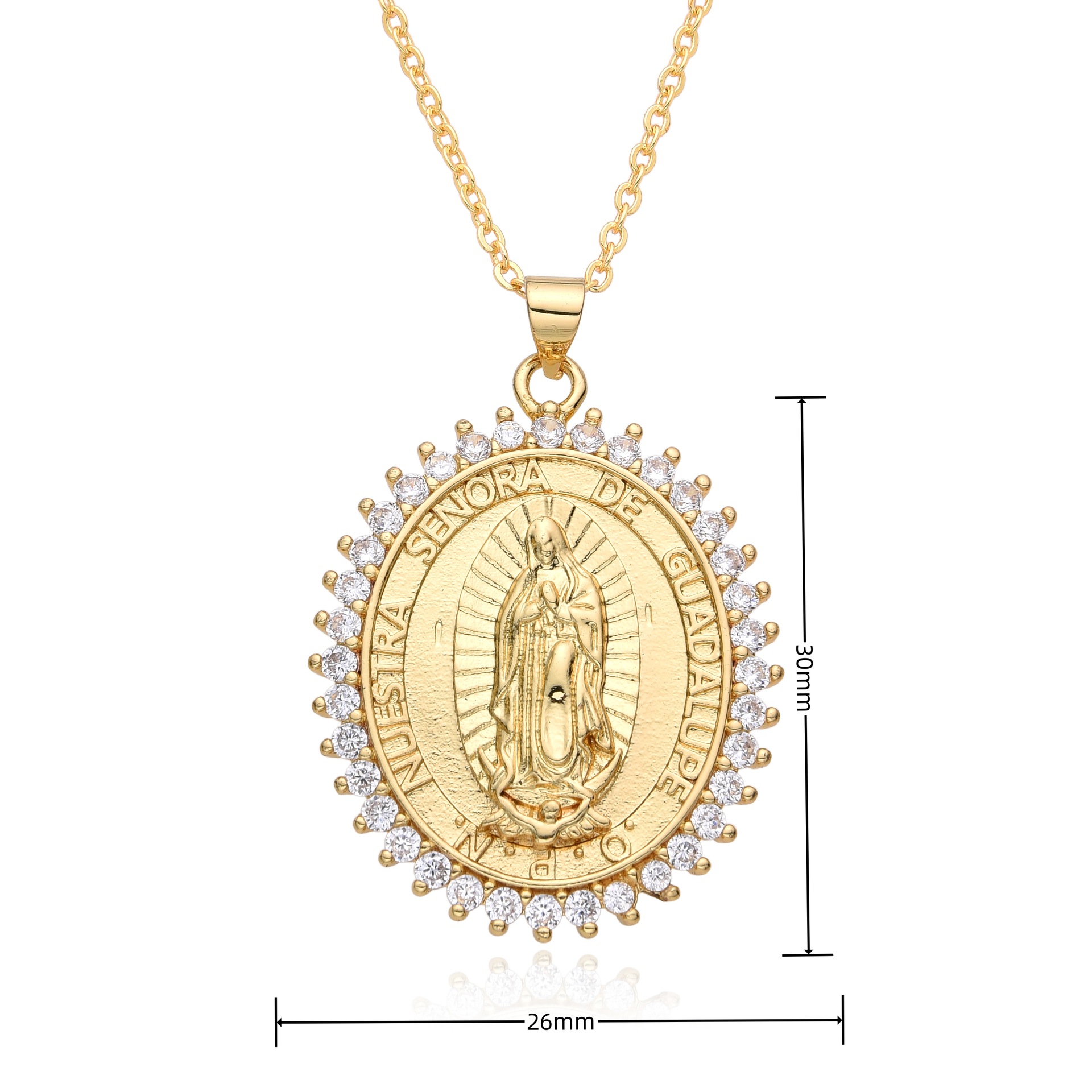 European and American Cross-Border Religious Personalized Statue Clavicle Chain Zircon Environmentally Friendly Copper Material Pendant Necklace Copper Plated 18Kf020