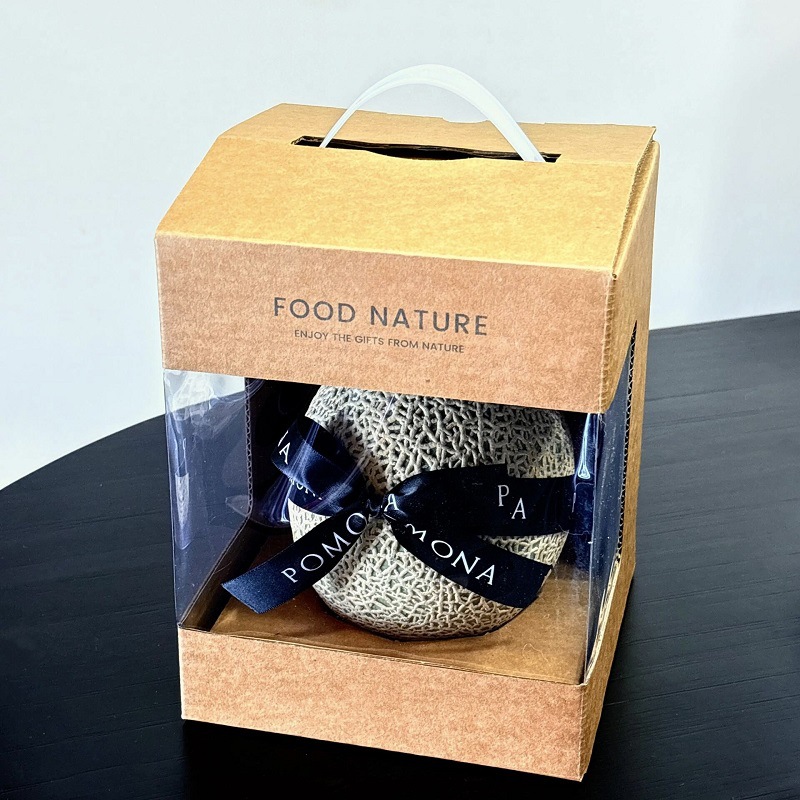 One Pack Net Melon Portable Gift Box Transparent Window Opening Cowhide Paper Box Hami Melon Watermelon Pineapple Fruit Packaging Box