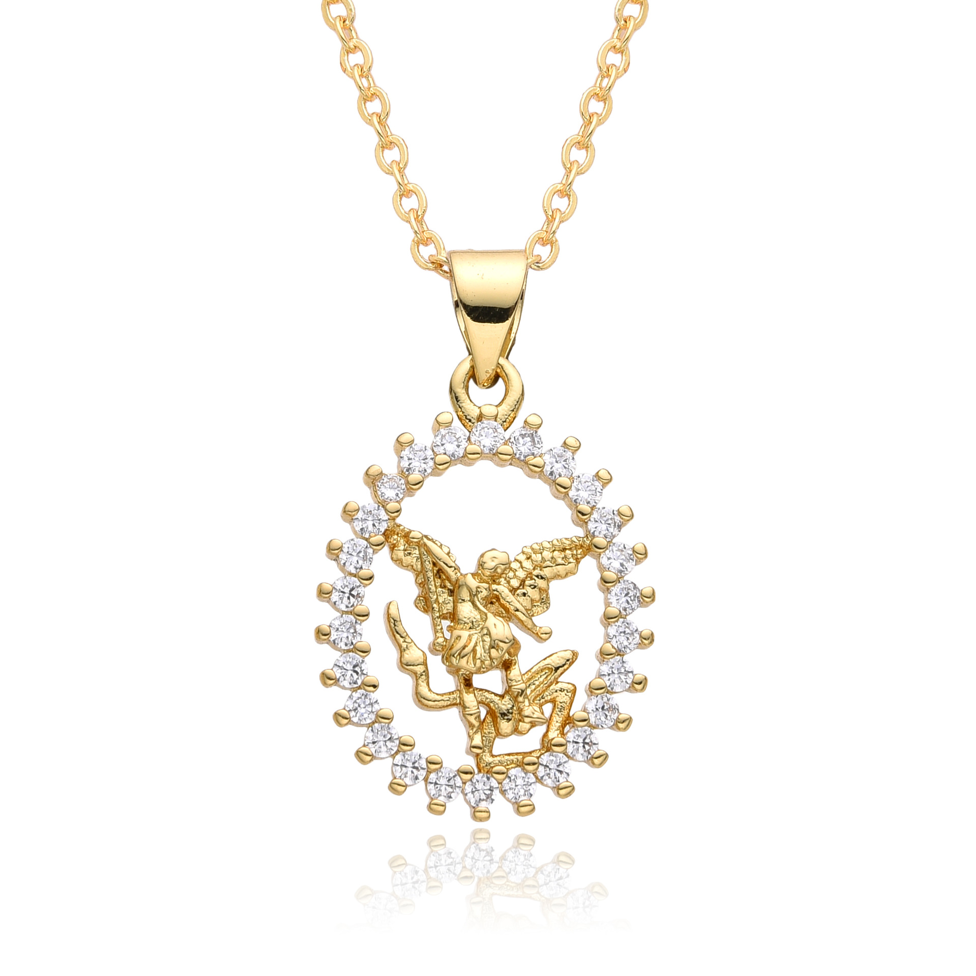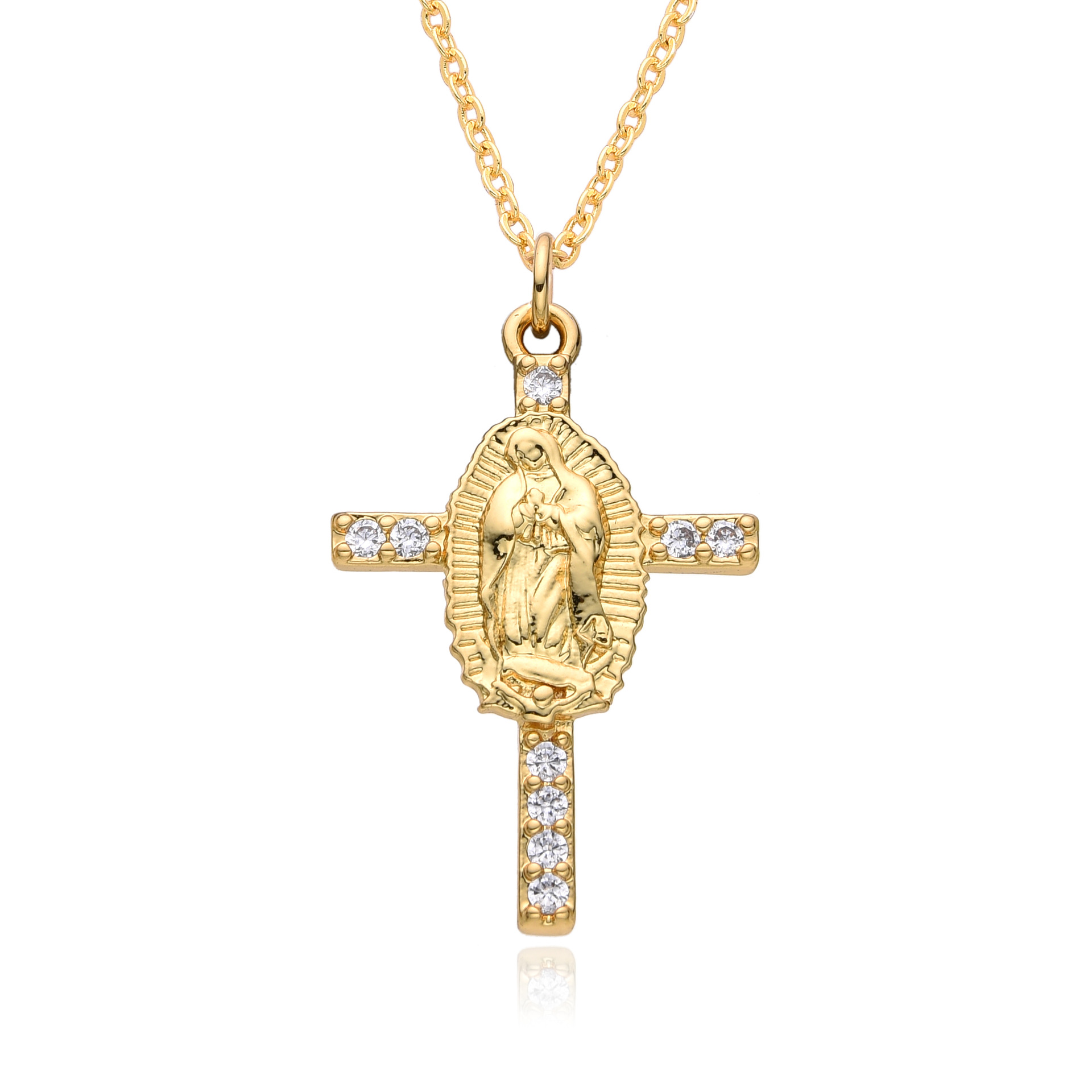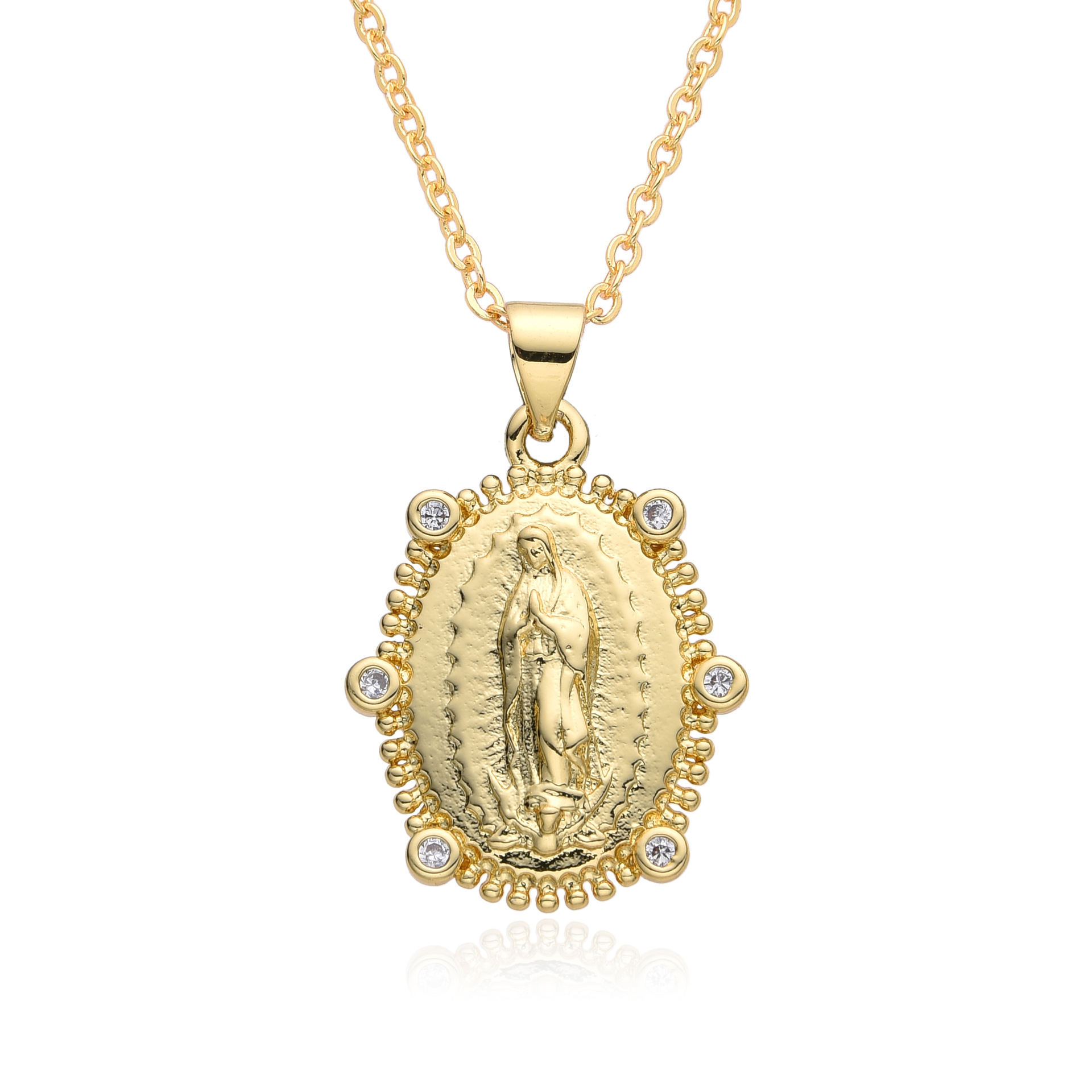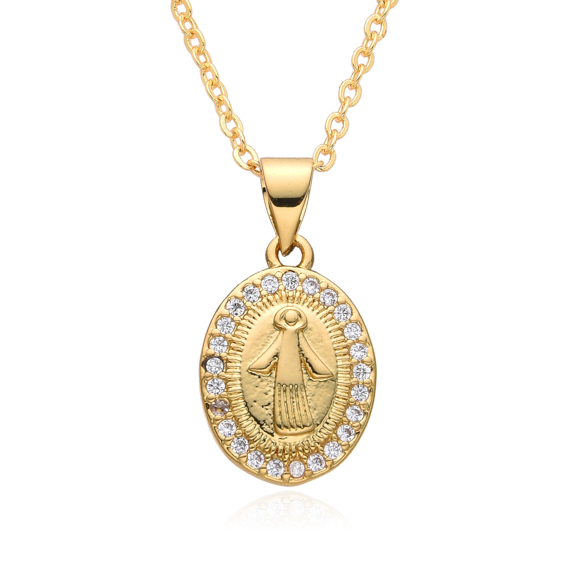 European and American Cross-Border Religious Personalized Statue Clavicle Chain Zircon Environmentally Friendly Copper Material Pendant Necklace Copper Plated 18Kb217