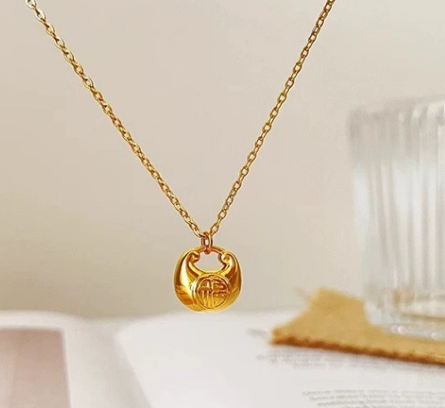 Color: X64-little yuanbao fu necklace-gold