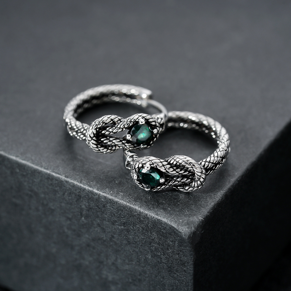 Color: X886-a (knot snake earrings) pair of green diamonds