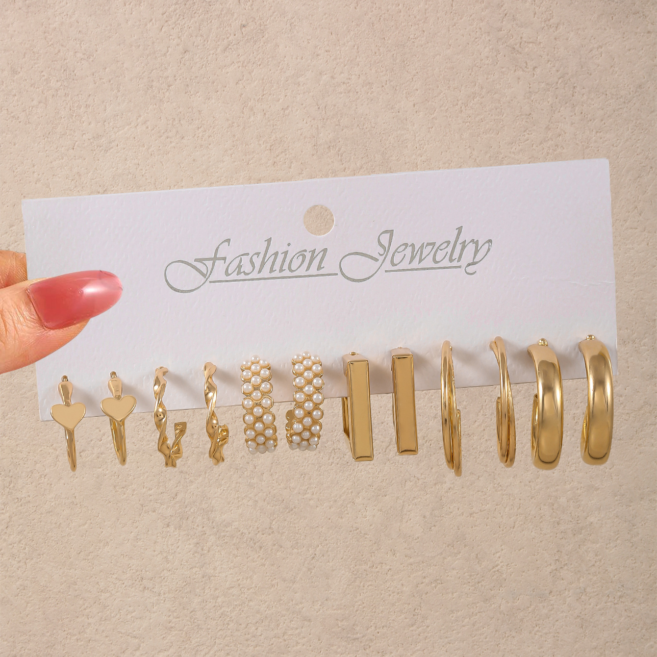 Color: 6 pairs—flat hearts—gold