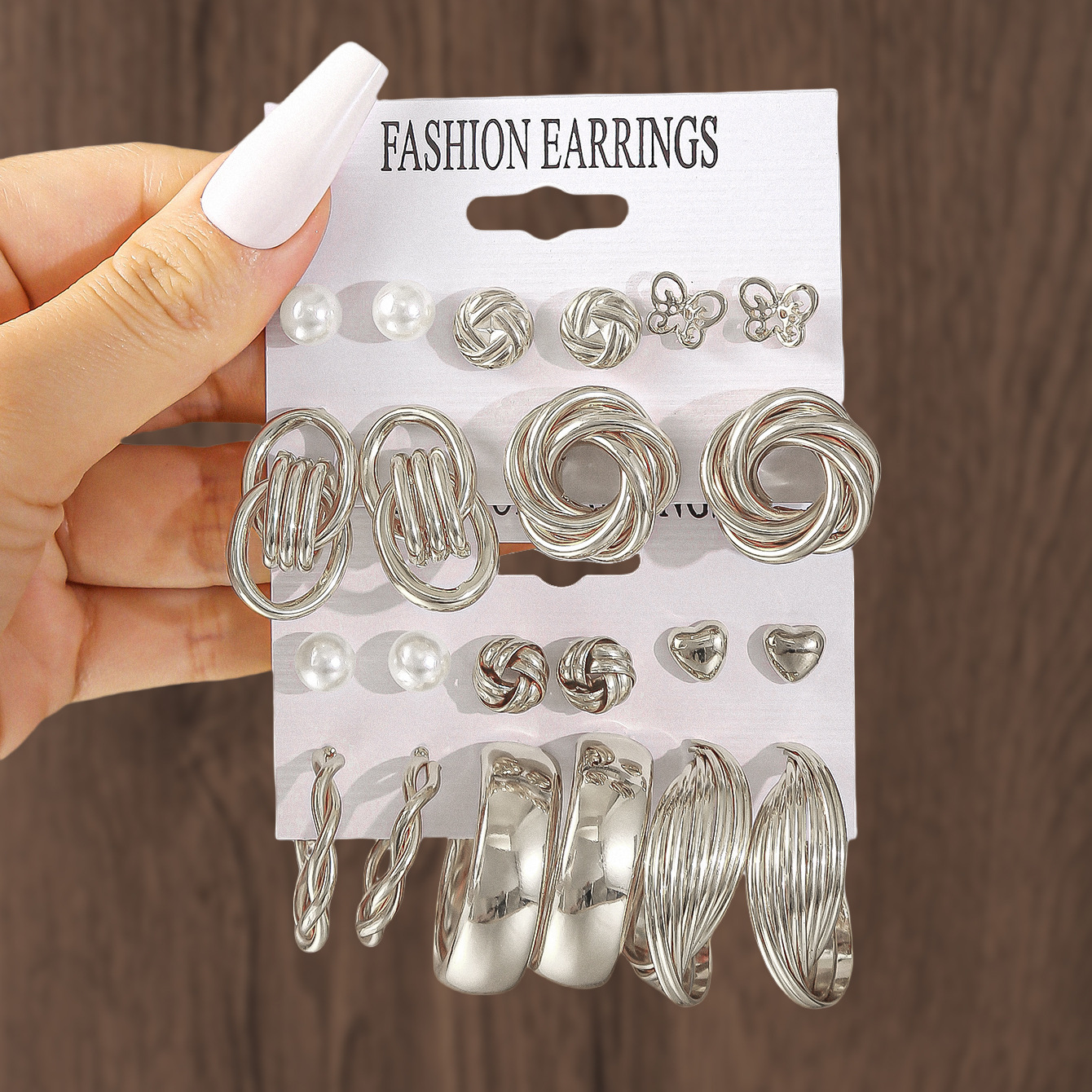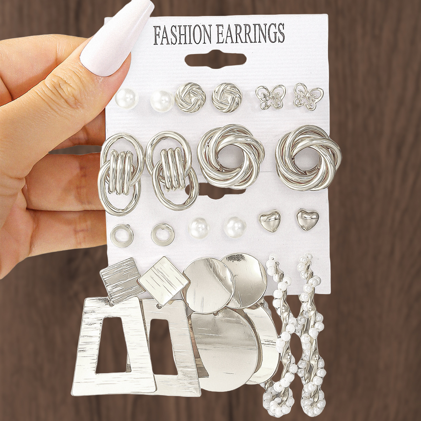 Color: 6 pairs—squares—silver