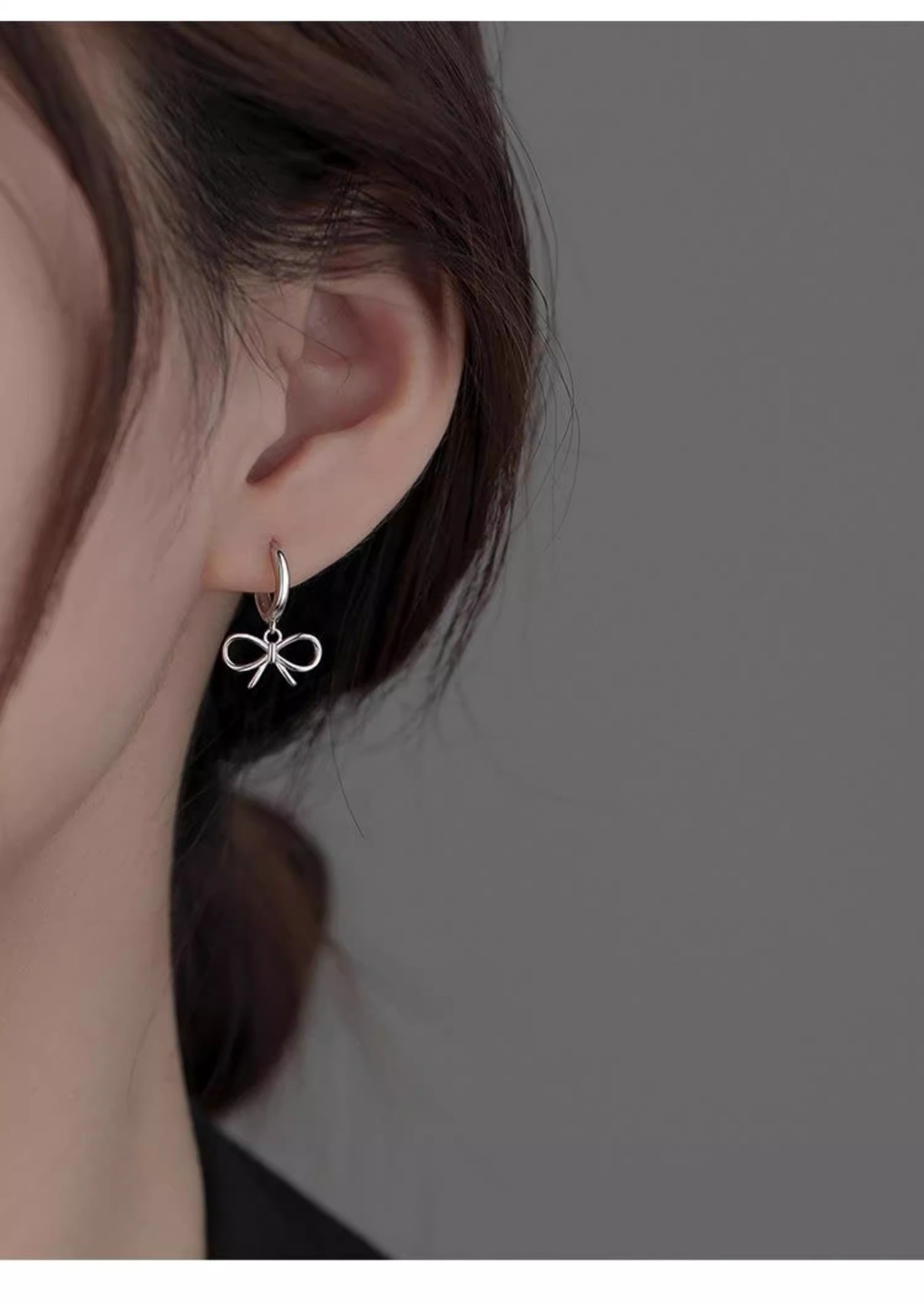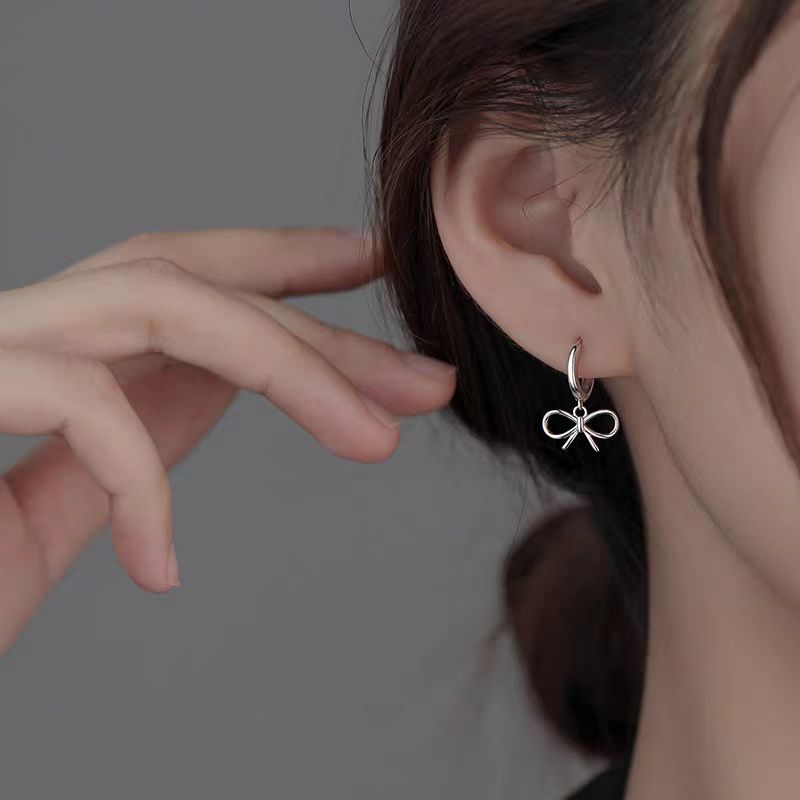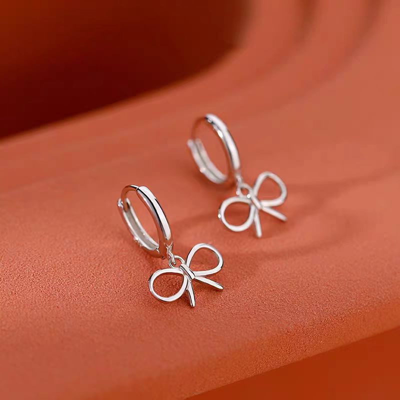 S925 Sterling Silver Pin Bow Ear Ring 2025 New Fashionable Korean Style Simple Small Fresh Niche Design Sense Ear Buckle
