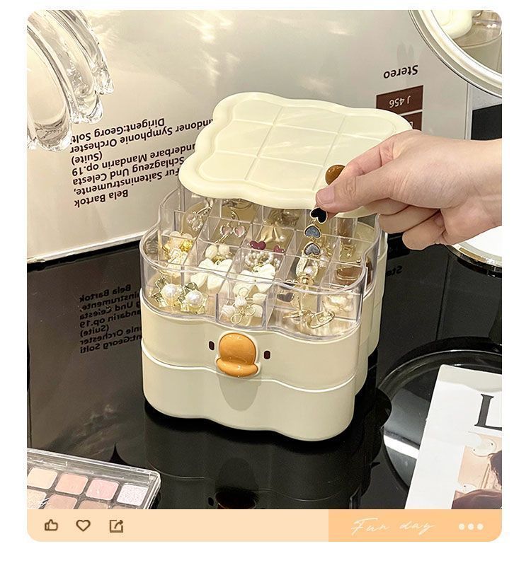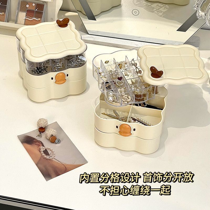 Rotating Jewelry Box with Multi-Layered Compartments, Large Capacity, Dust-Proof and Anti-Oxidation Ring, Necklace, Earrings, Earrings, Cute Storage Box