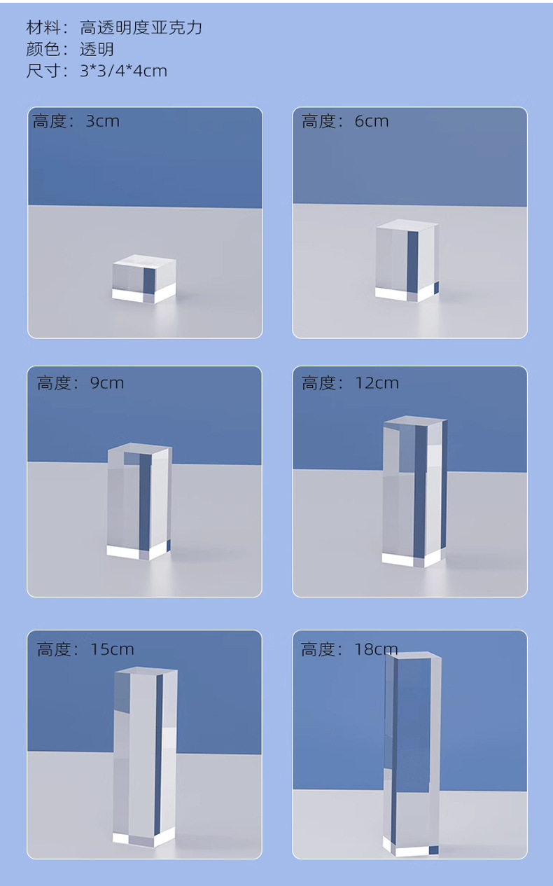 Acrylic Transparent Square Column Crystal Square Main Column Jewelry Props Cosmetics Display Stand Jewelry Base Holder
