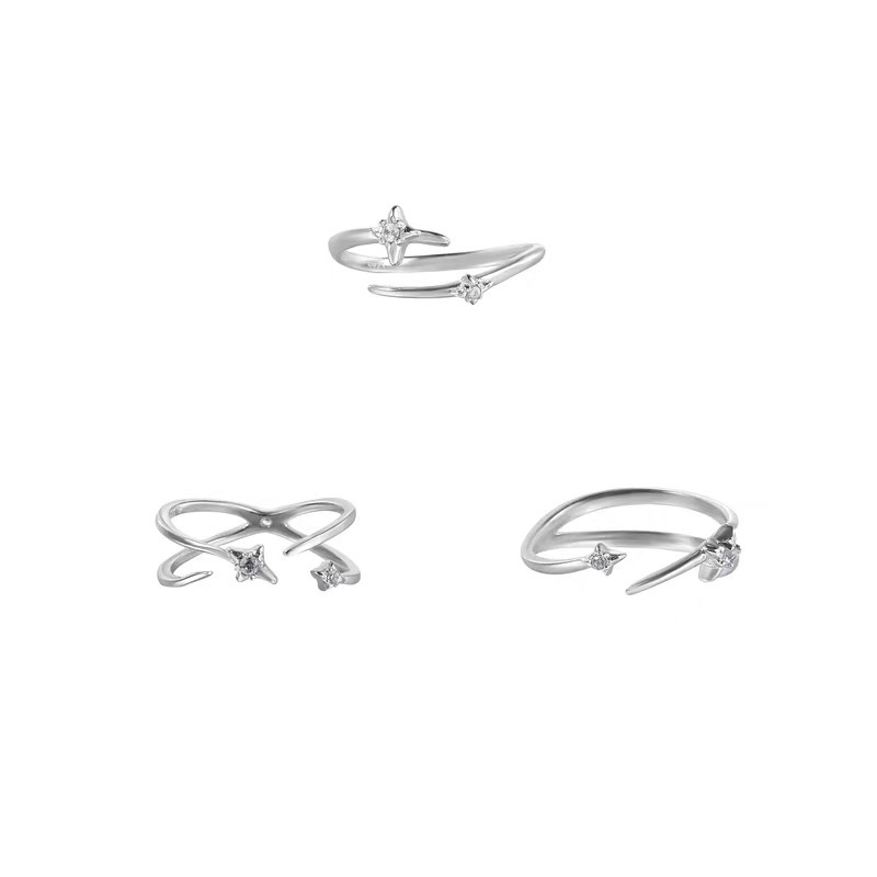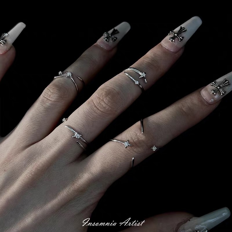 Niche Design Four Mans Star Zircon Ring Girls Ins High Sense Cold Wind Open Index Finger Ring Tail Ring