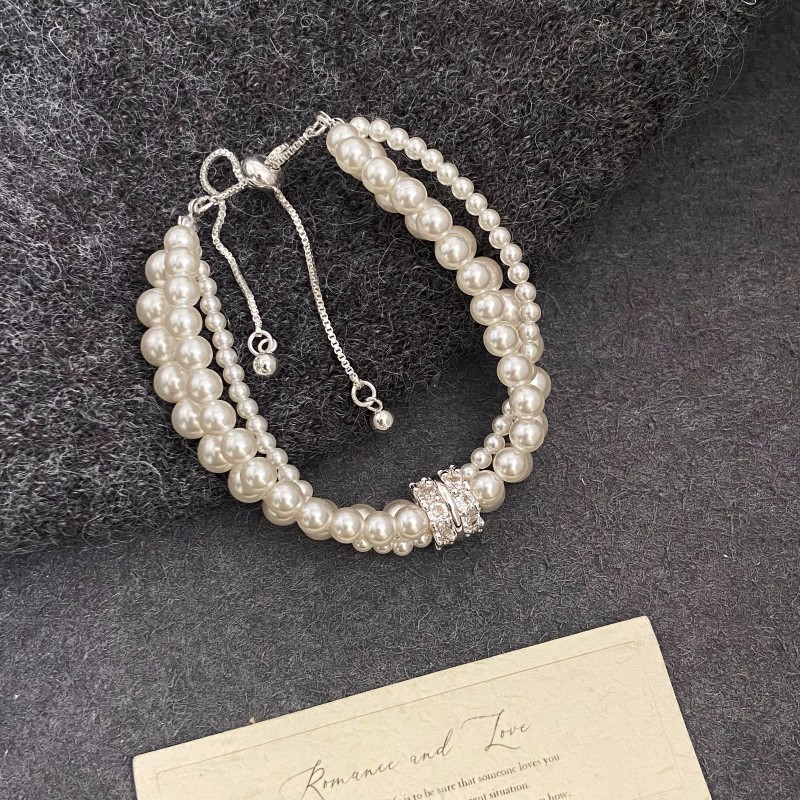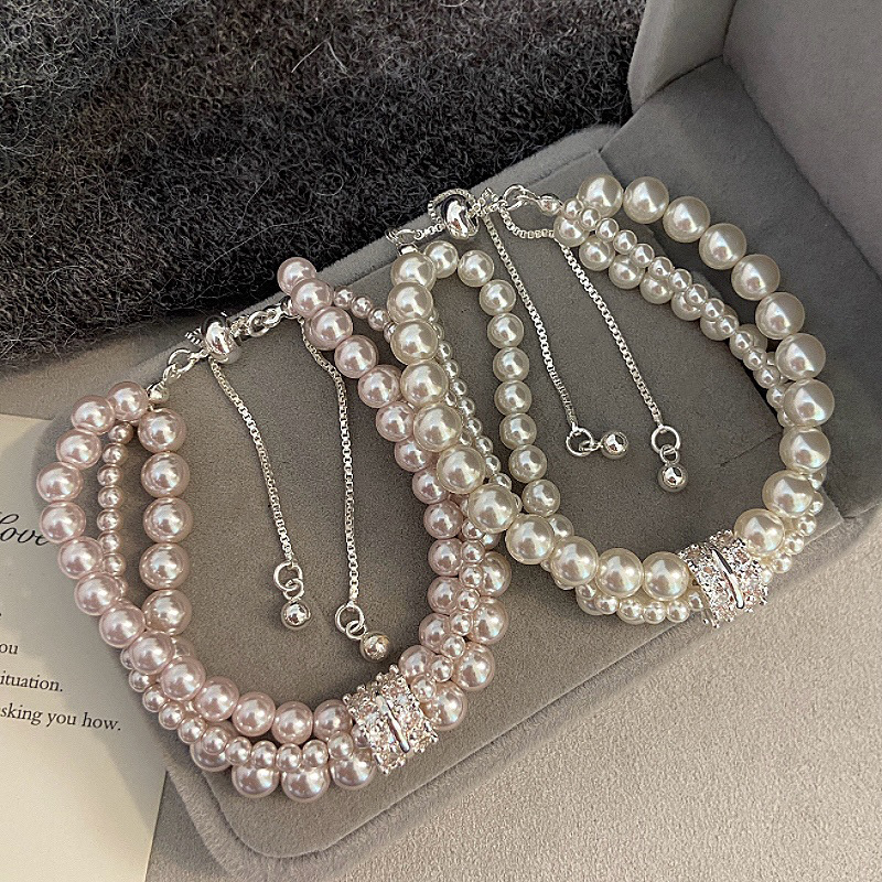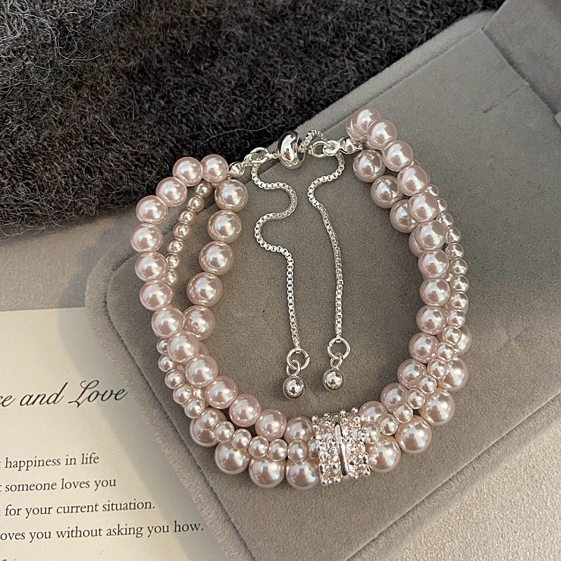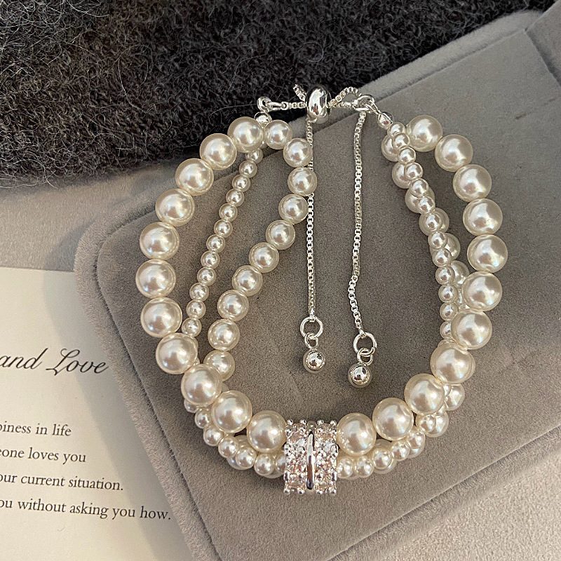 Manta Rose Home Pearl Two-color Three-layer Micro-inlaid Zircon Bracelet Women's Light Luxury Exquisite Niche Design Feeling Bracelet