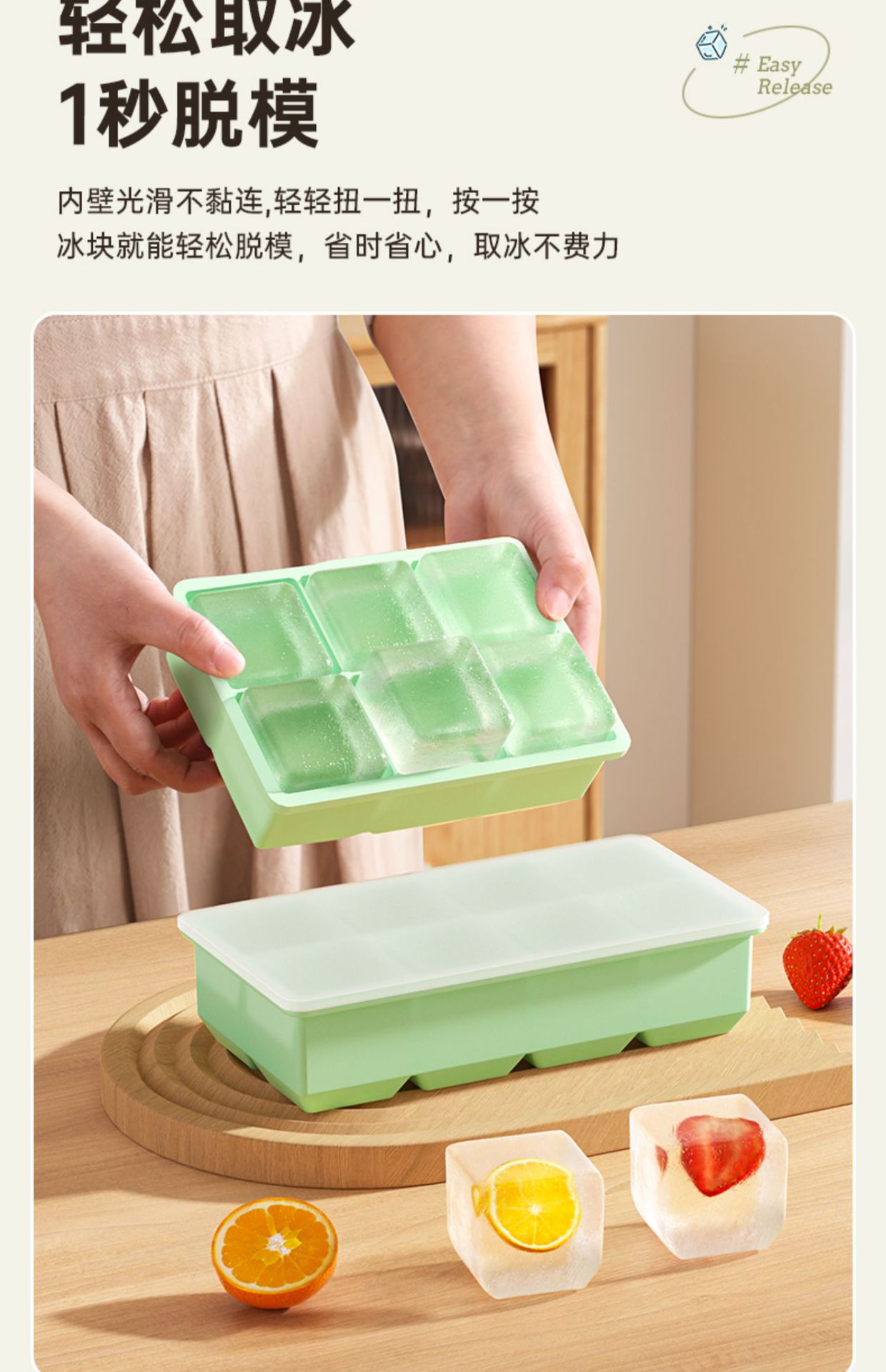 Large Ice Cube Mold Large Food Grade Soft Silicone Ice Cube with Cover Household Ice Cube Ice Box Frozen Ice Cube Artifact