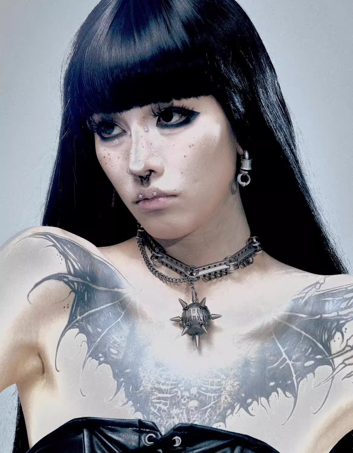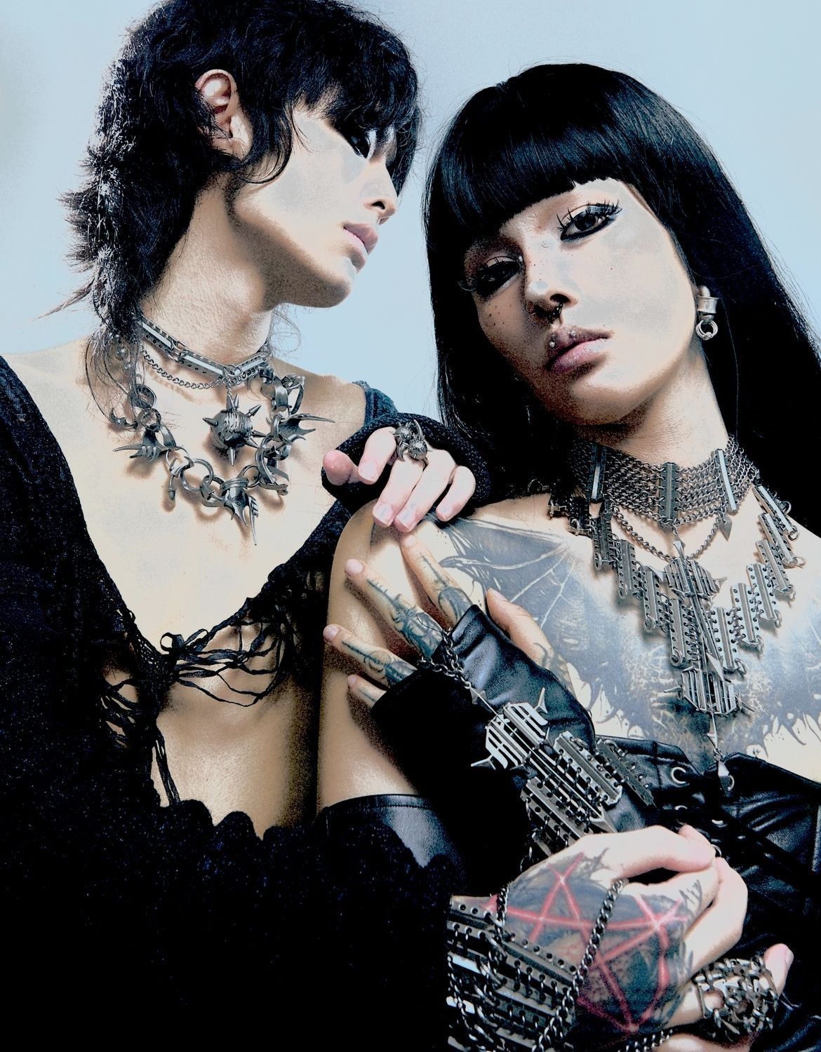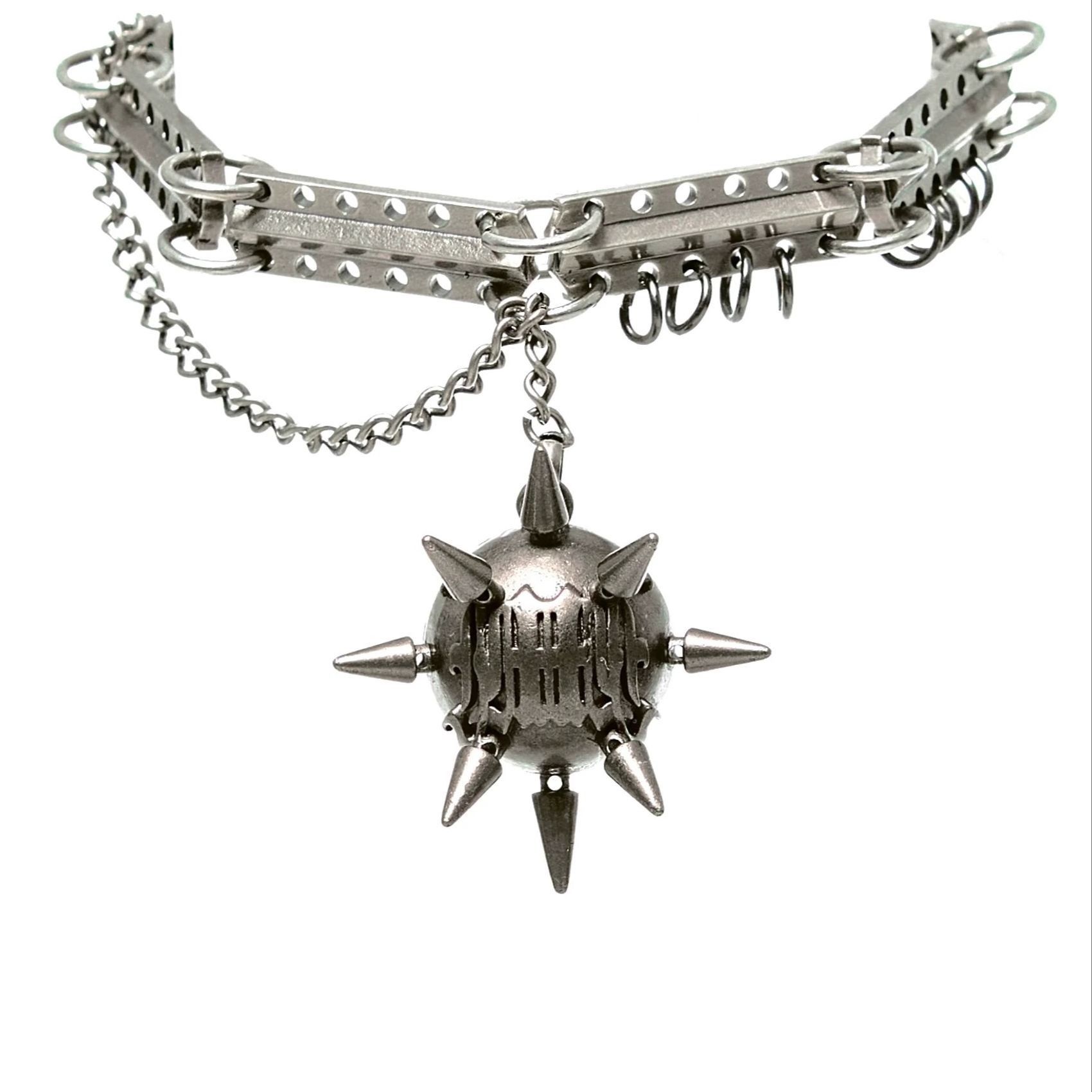 Residual Network I Series Dark Metal Ball Chain Spliced ​​Collar Necklace