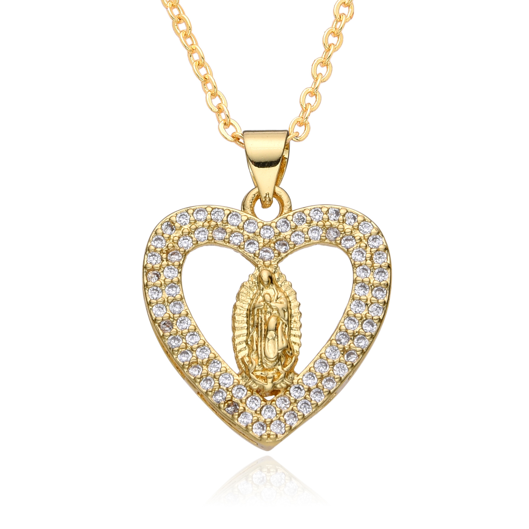 European and American Cross-Border Religious Personalized Statue Clavicle Chain Zircon Environmentally Friendly Copper Material Pendant Necklace Copper Plated 18Kd108