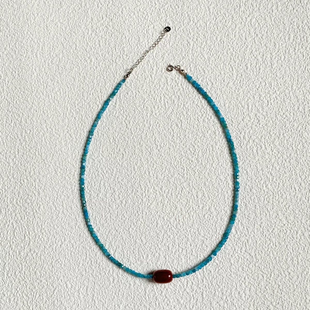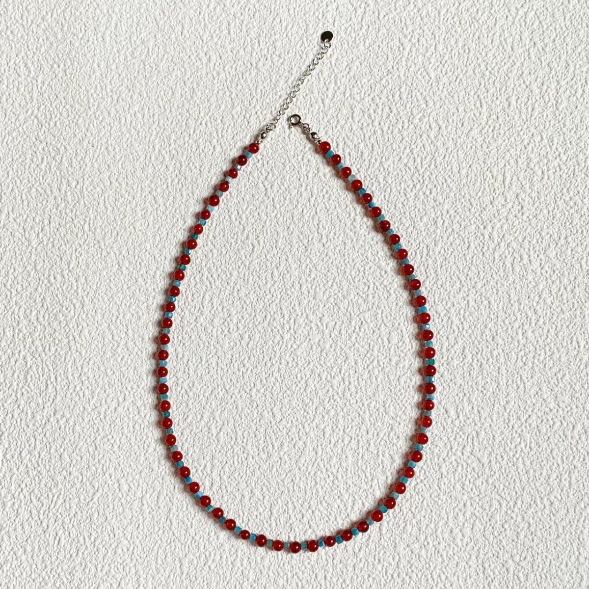 Flowers ~ Retro Atmosphere Clavicle Chain Women's Red and Blue Beaded Ins Niche Design Elegant Neck Chain Necklace