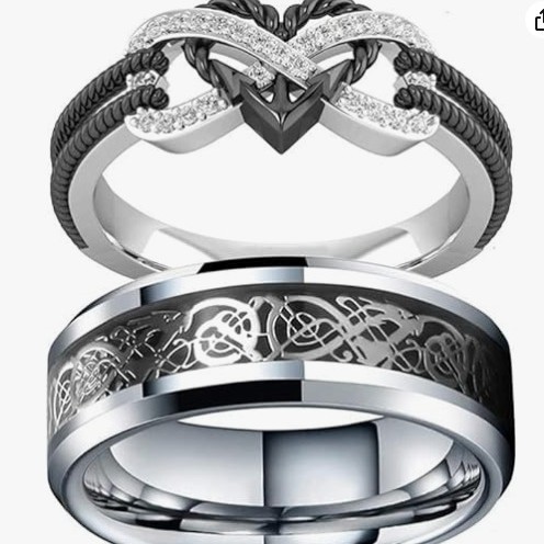 Color: Men's black edge silver stainless steel ring in the middle