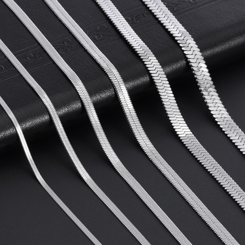 Cross-Border Hot-Selling Stainless Steel Blade Chain European and American New Men's and Women's Hip-Hop Personality Clavicle Flat Snake Necklace Titanium Steel Necklace