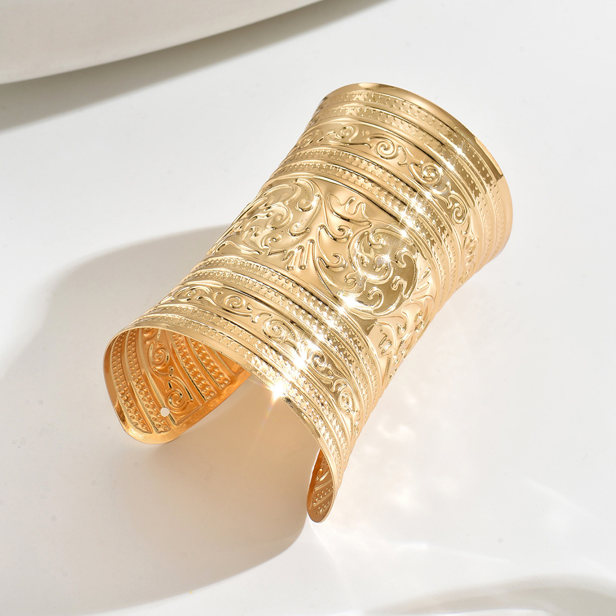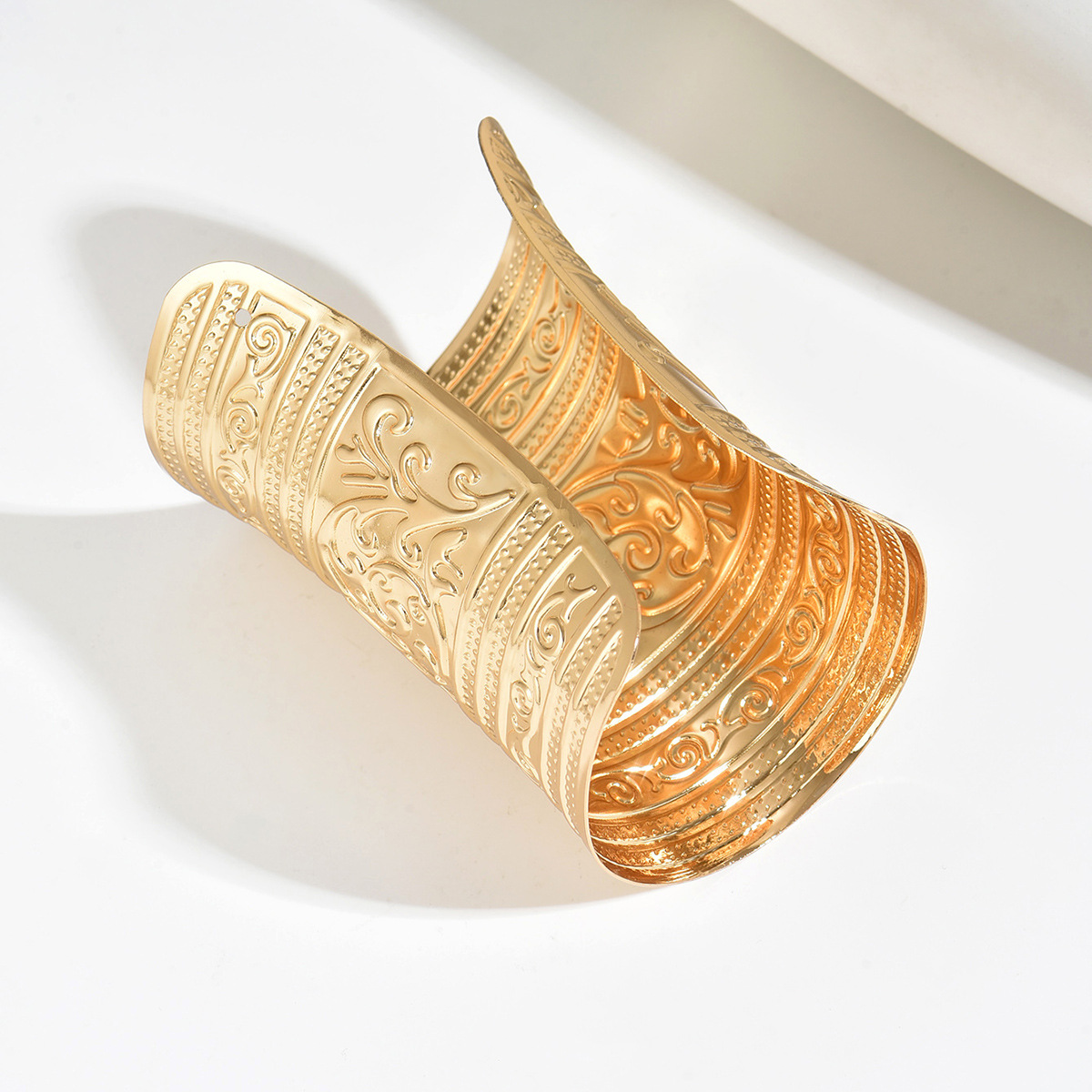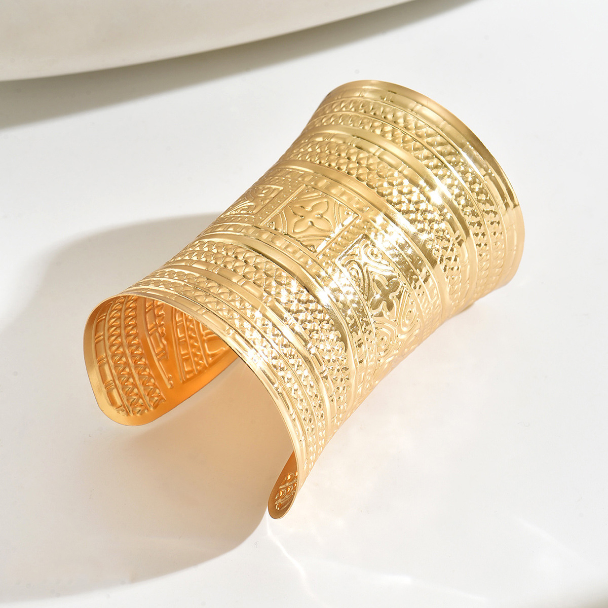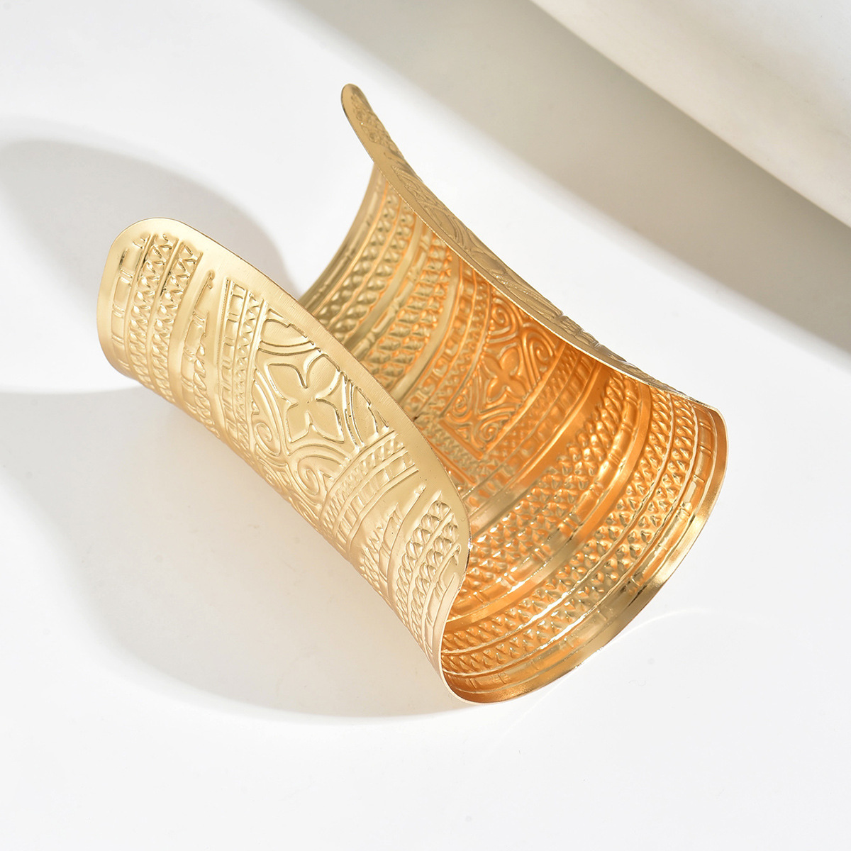 Ins Personalized Bohemian Ethnic Style Bracelet Retro Middle Eastern Indian Style Embossed Large Wide Bracelet