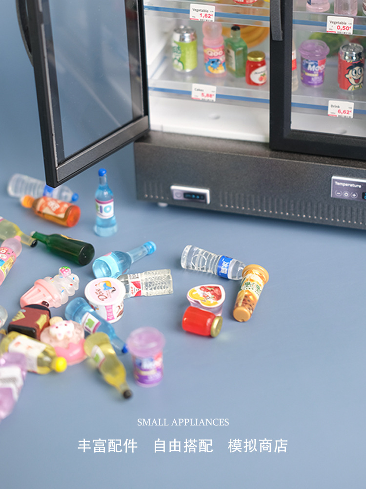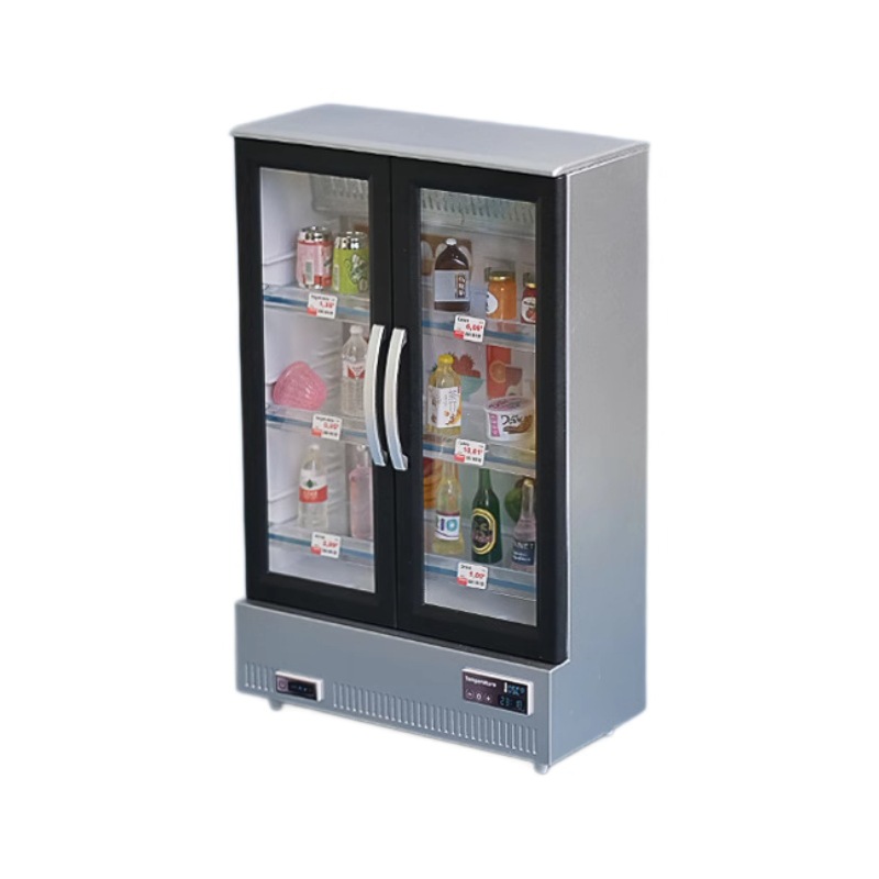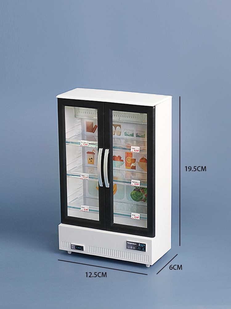 Mini simulation double door large refrigerator freezer with light music food play kitchen ornaments play house cross-border distribution