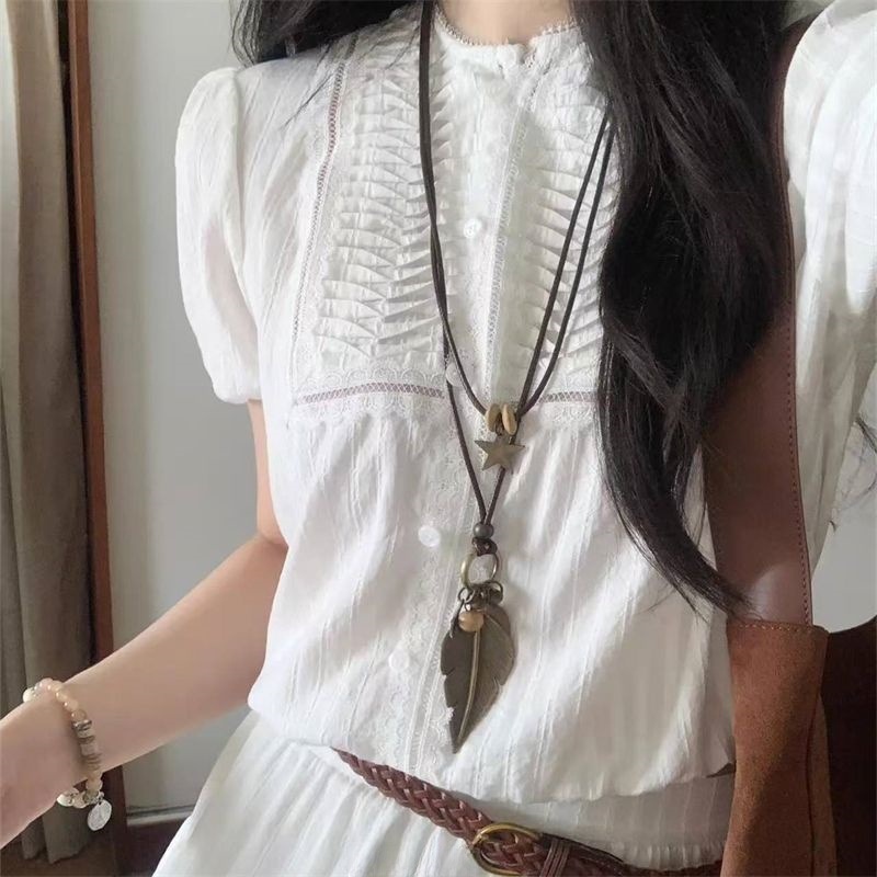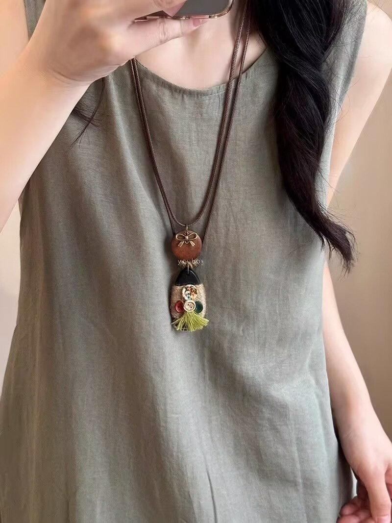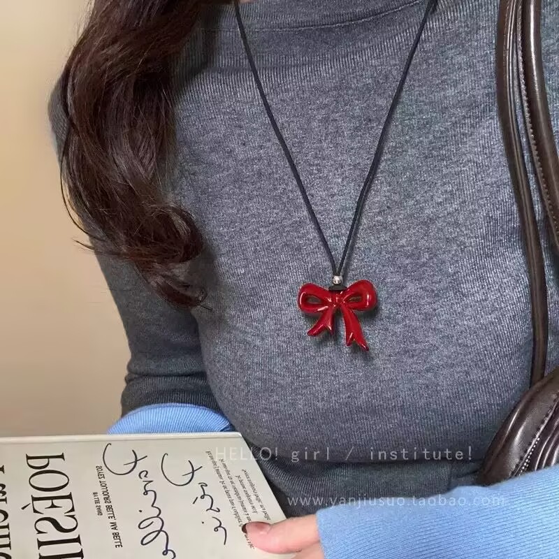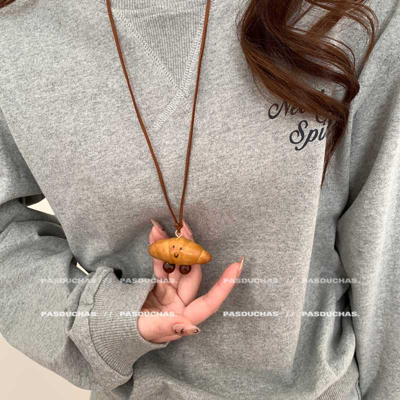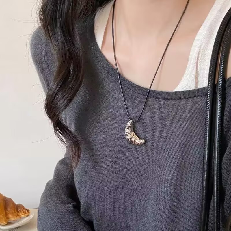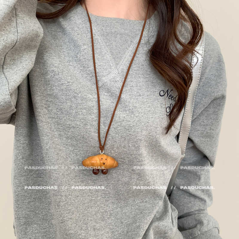 Cute Niche Design Alkaline Knot Bread Pendant Necklace Women's Autumn and Winter Croissant Long Sweater Chain Accessories Sweater Chain