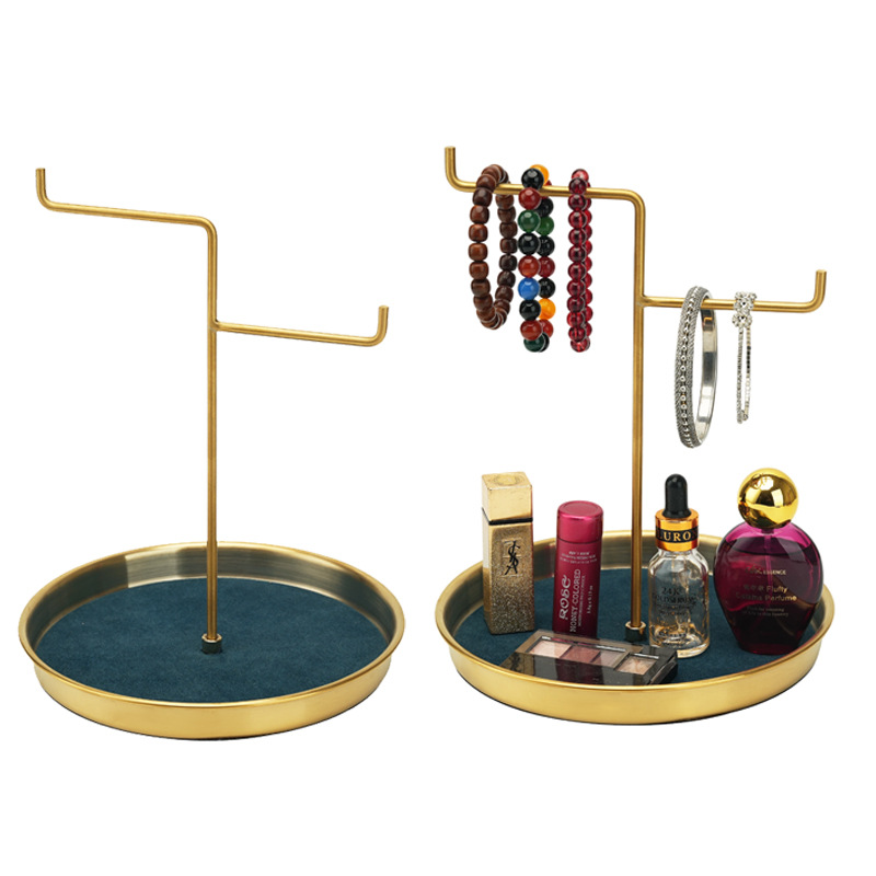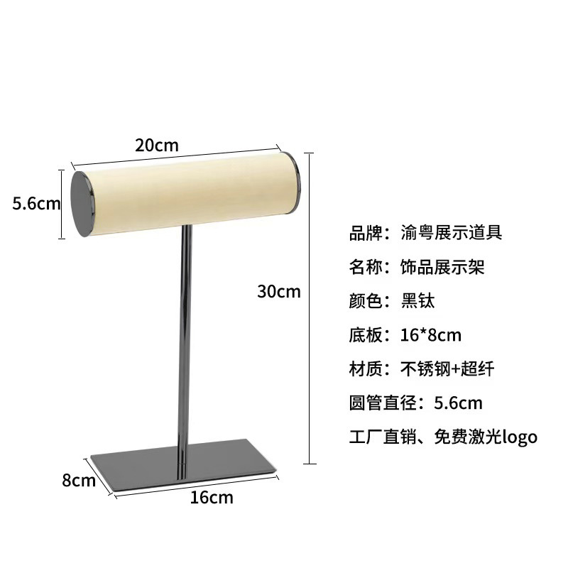 Color: Round bottom double-ended jewelry stand brushed titanium