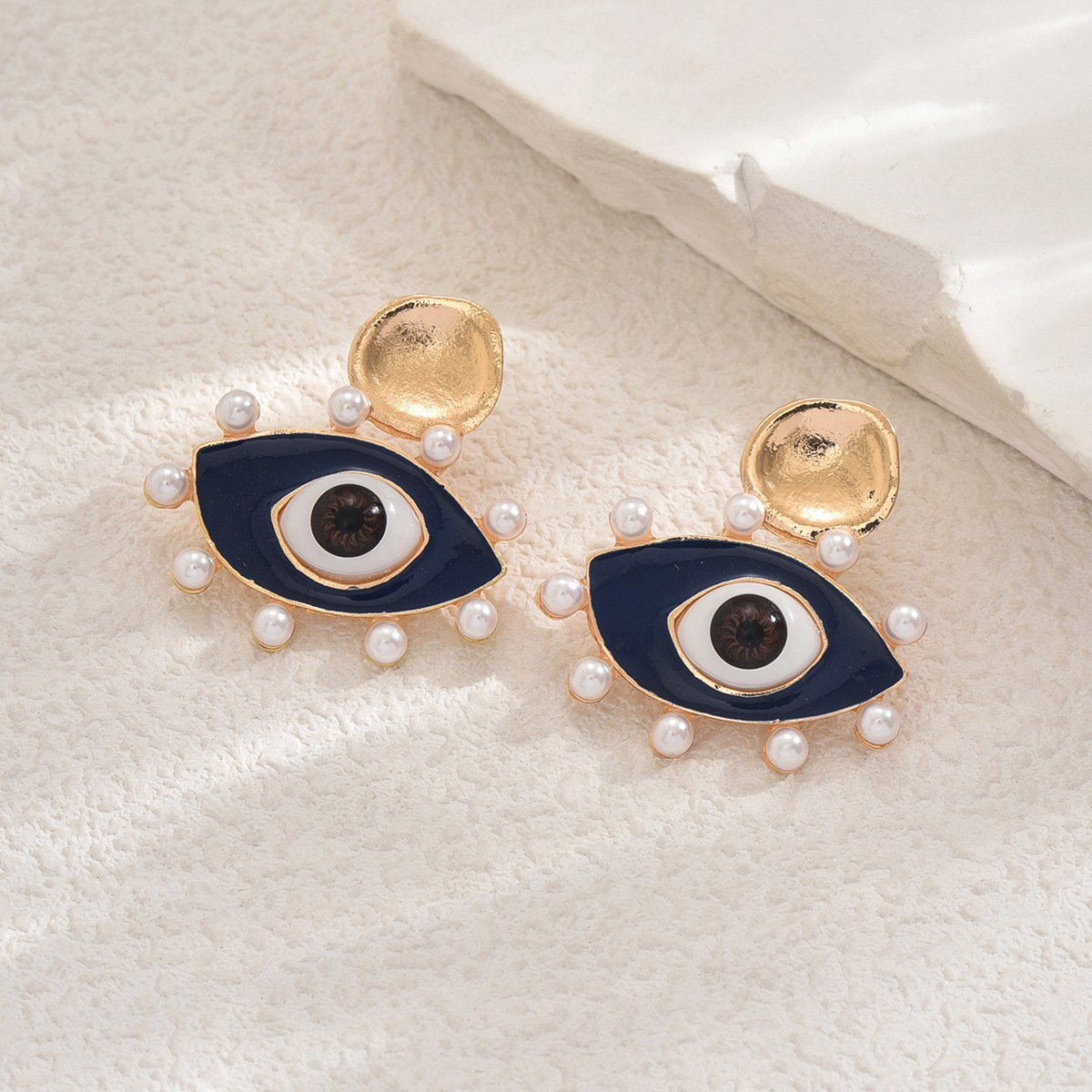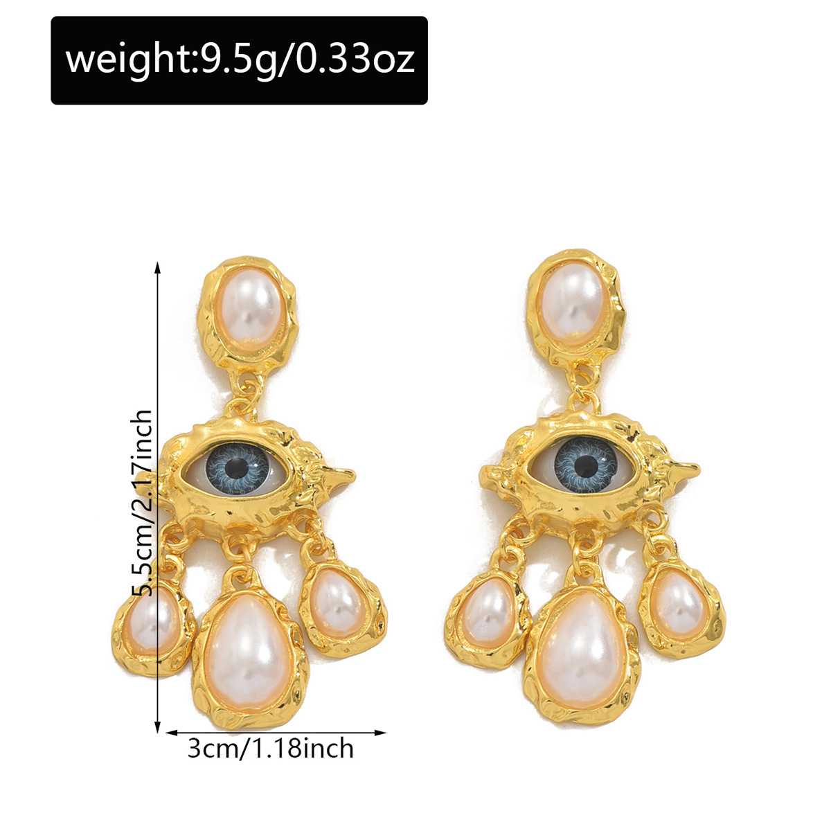 Devil's Eye Earrings Wholesale European and American Cross-Border Jewelry Light Luxury High-End Retro Niche Pearl Water Drop Earrings for Women