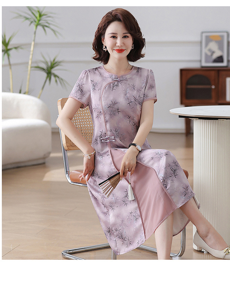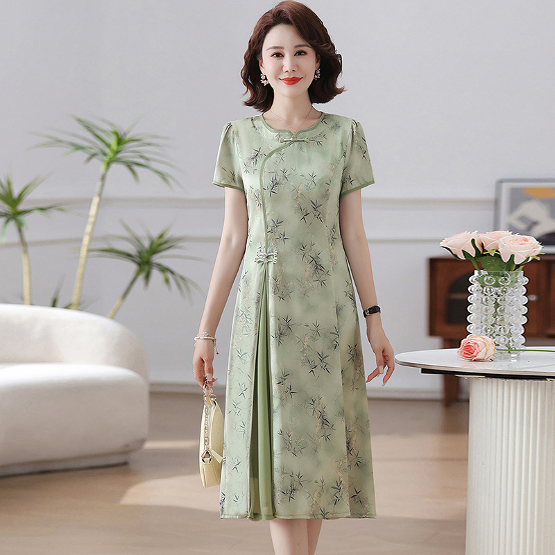 New Chinese Cheongsam Women's 2025 Summer New Temperament Improved Mother's dress Short-sleeved Middle-aged and Elderly Women's Dress