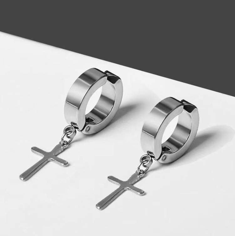 Cross-border hot cross earrings female earrings male earrings smooth earrings men and women titanium steel ear jewelry factory direct sales