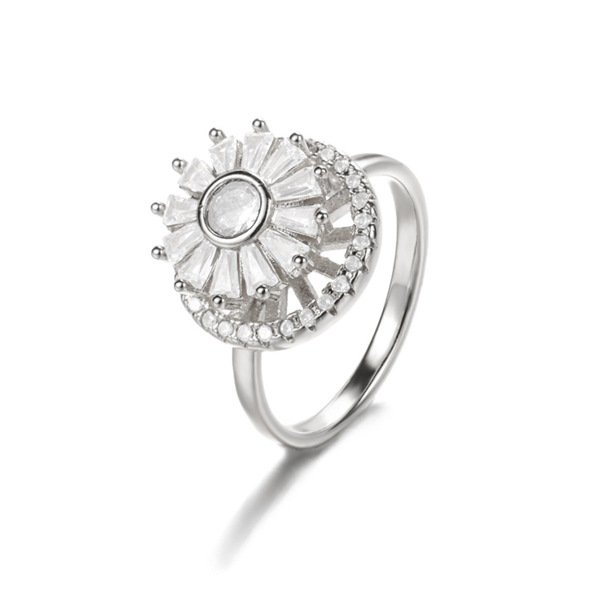 Amazon Explosions Rotary Full Diamond 18K Gold Plated Ring Relief Anxiety Opening Flower Ring Decompression Ring Wholesale