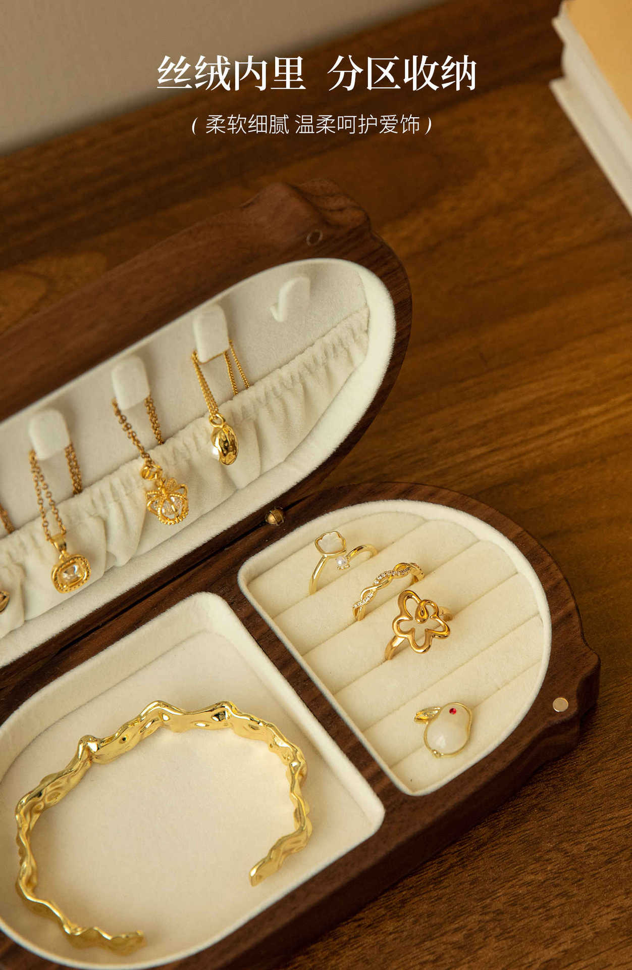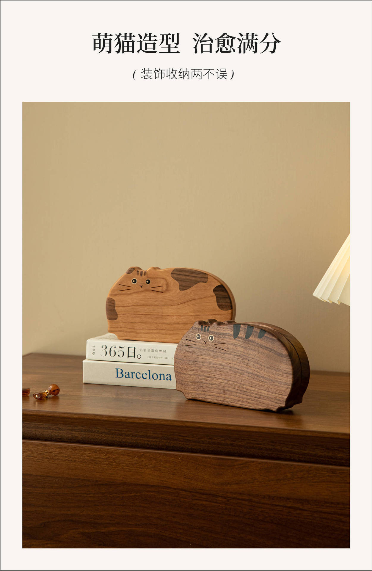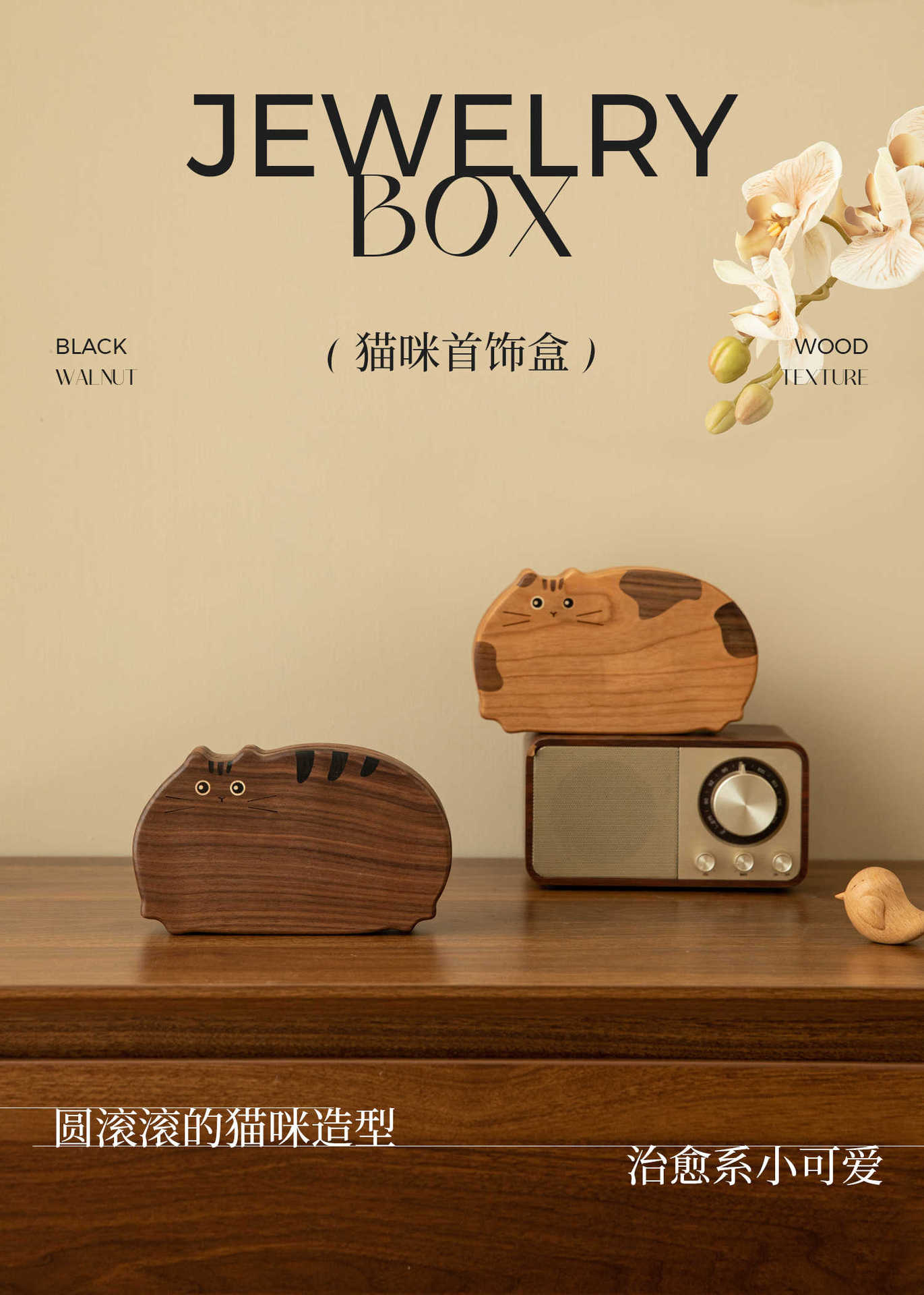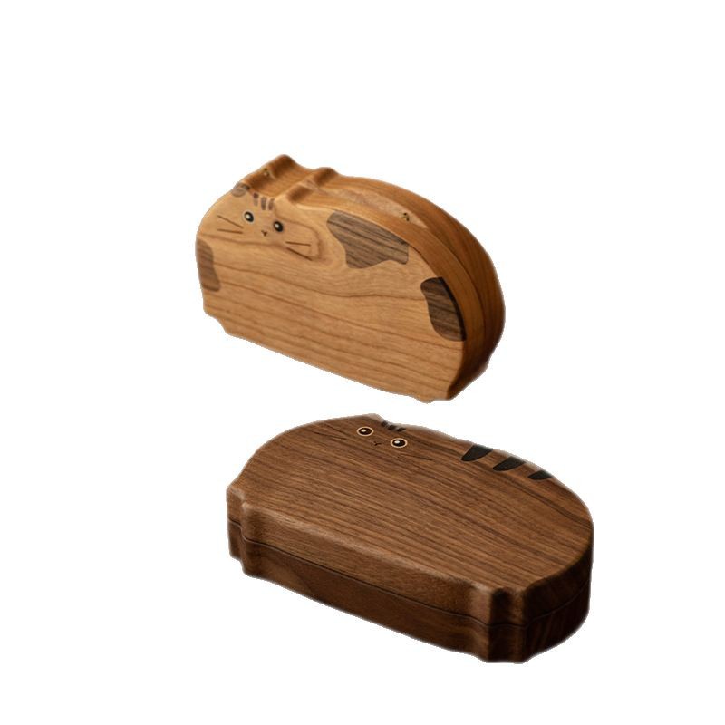 Cute Kitty Jewelry Box Solid Wood Portable Small Handicraft Box Jewelry Box Necklace Earrings Jewelry Storage Box