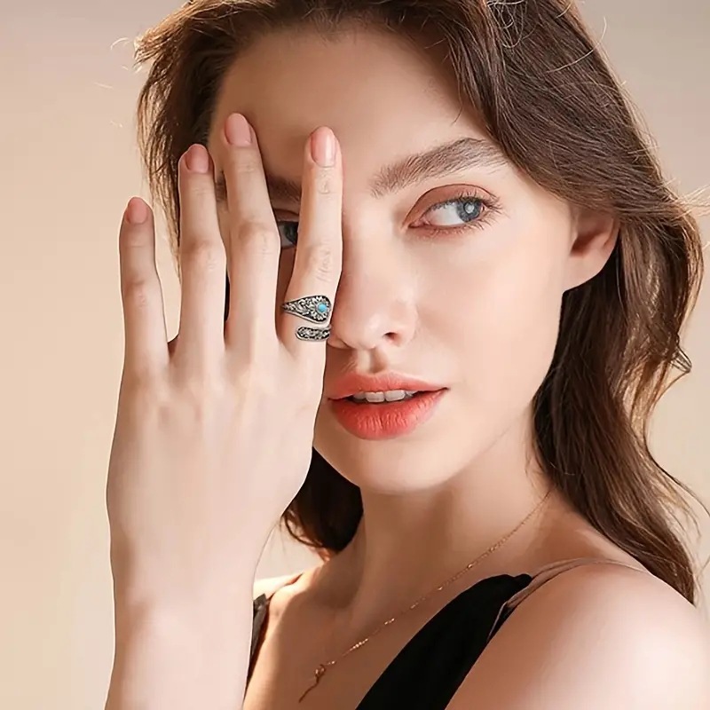 Huiyang Amazon New European and American Bohemian Retro Sunflower Turquoise Women's Flower Adjustable Ring