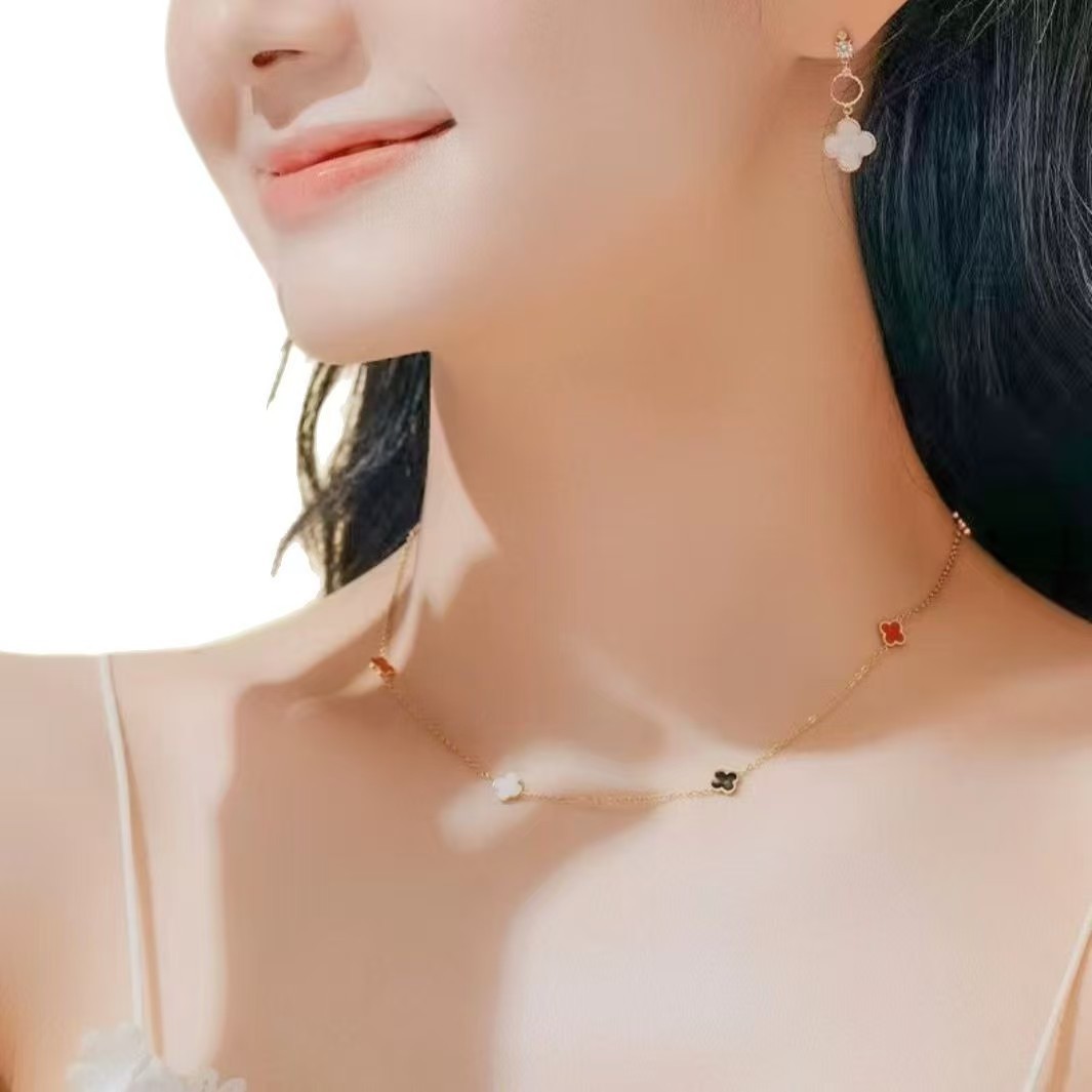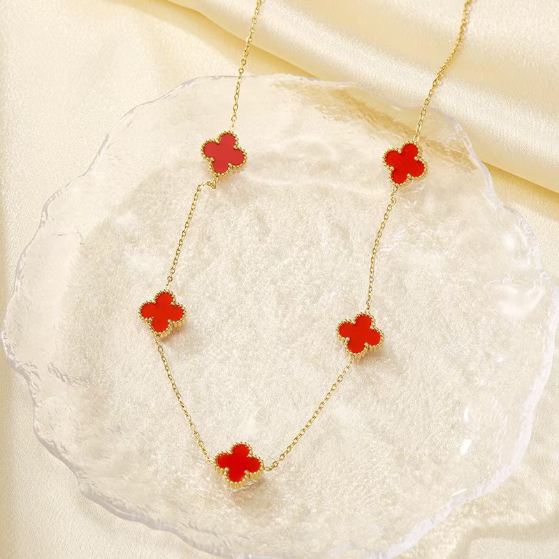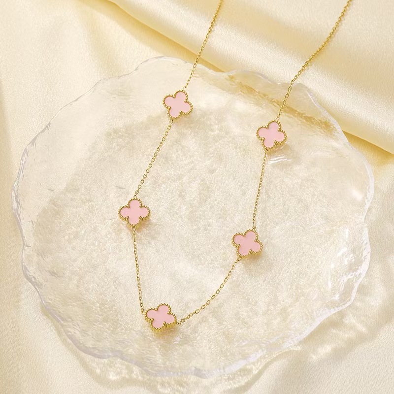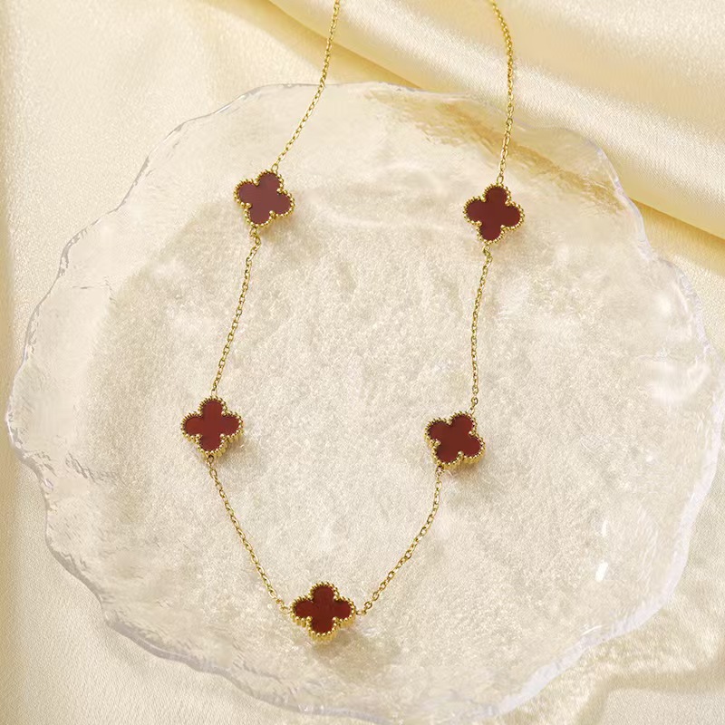 9mm four-leaf clover necklace titanium steel non-fading color five flowers all-match design light luxury niche clavicle chain plum blossom