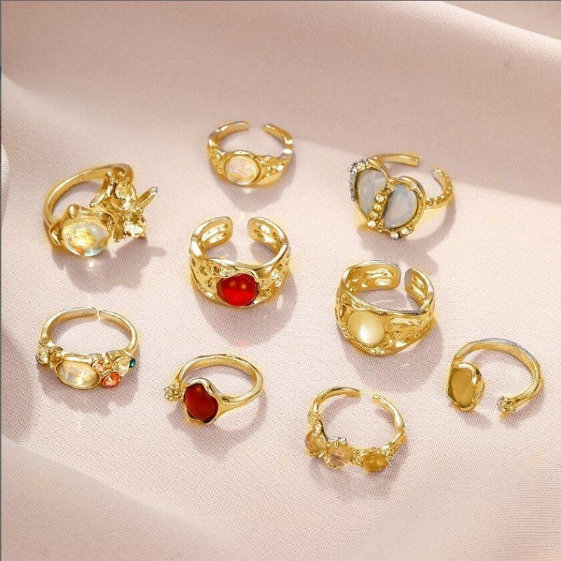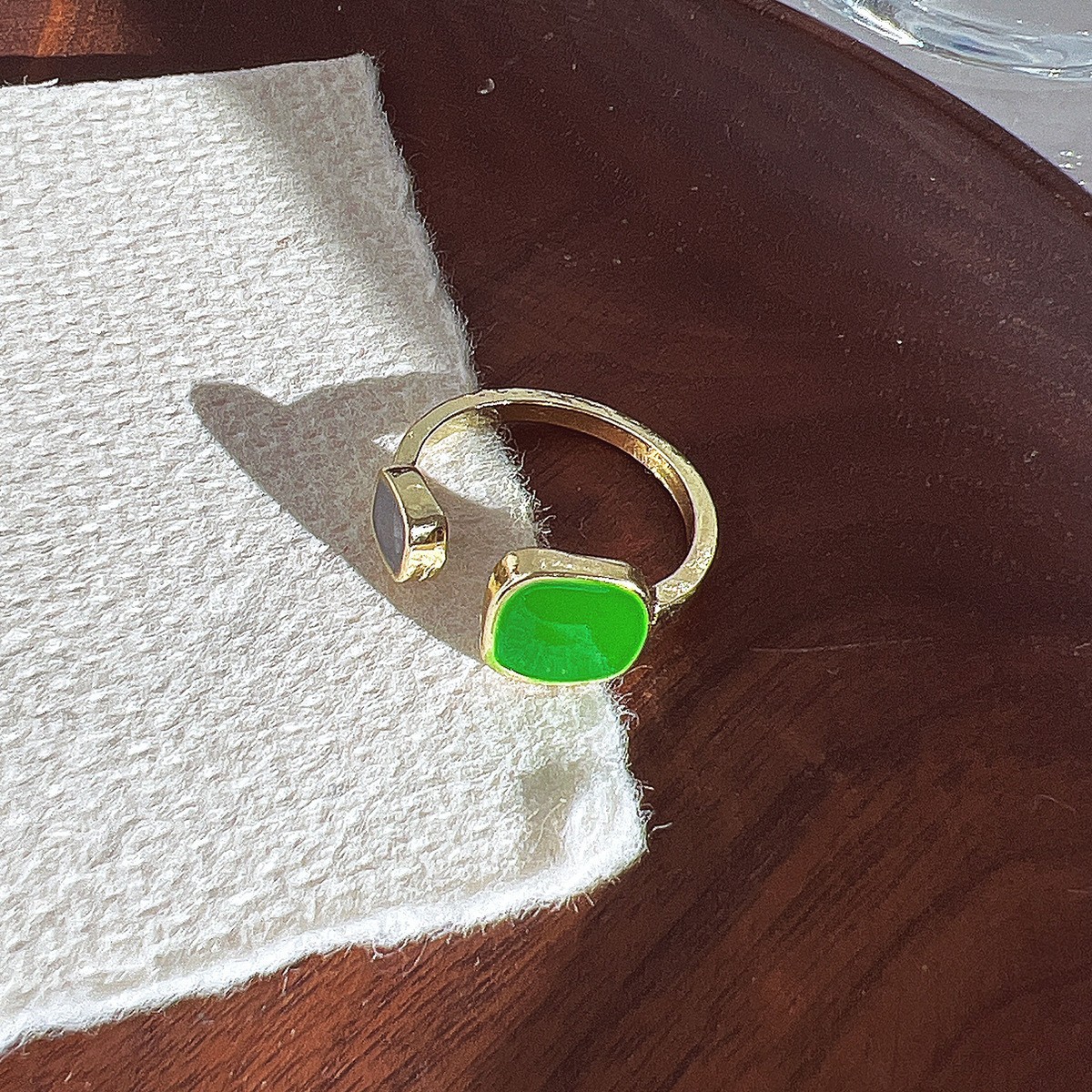 Emerald Ring Women's Cold Style Niche Design High-end Sense Light Luxury European and American Opening Adjustable Ring Tail Ring Trendy