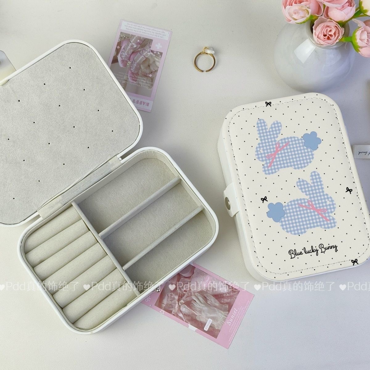 Dreamy Bunny Ins Earring and Necklace Storage Box High-Value Jewelry Bag Travel Portable Storage Anti-Loss