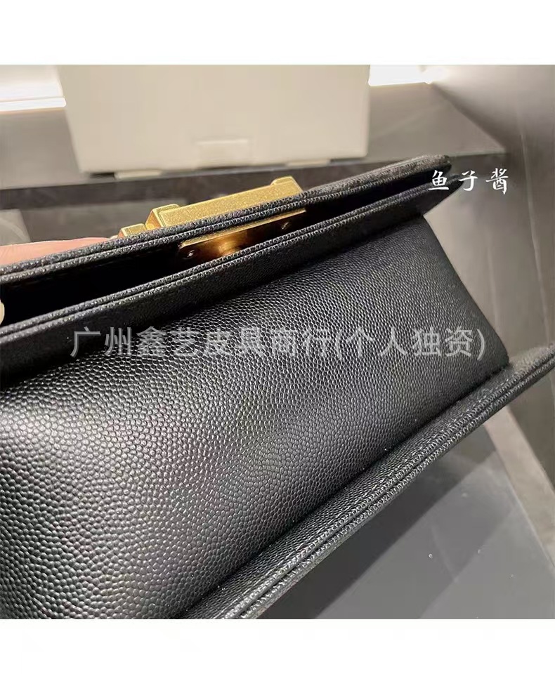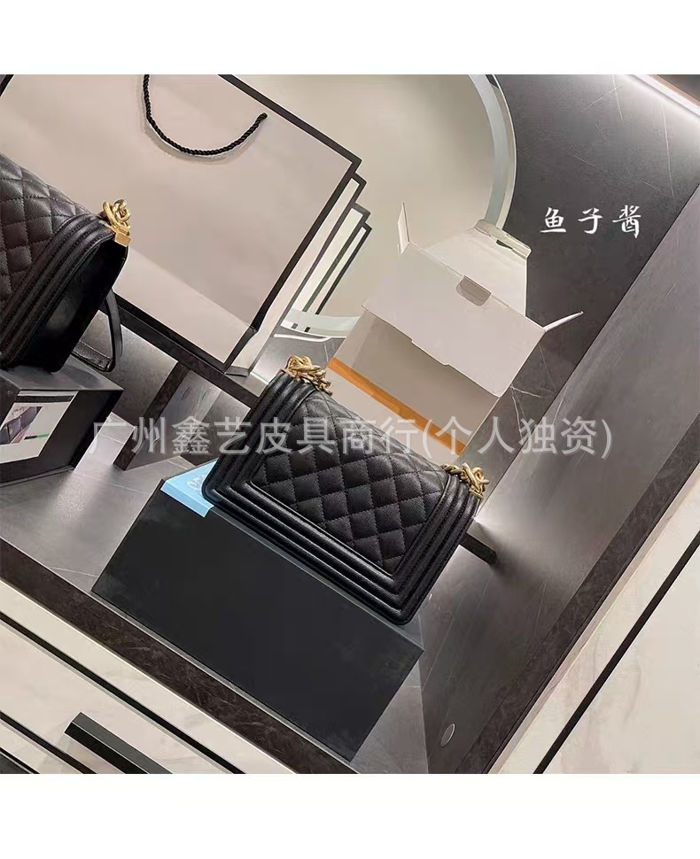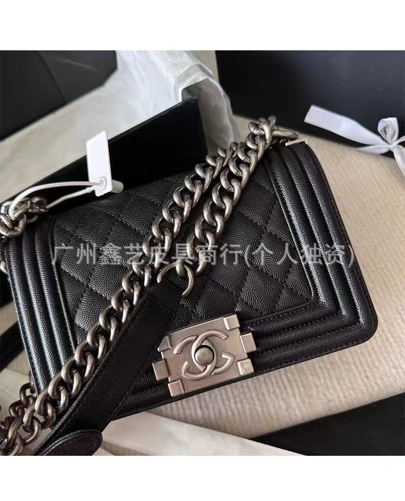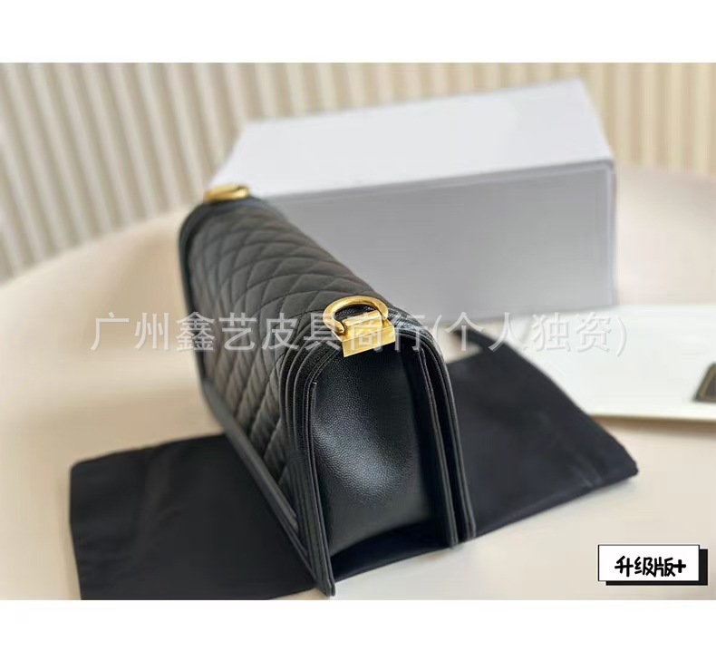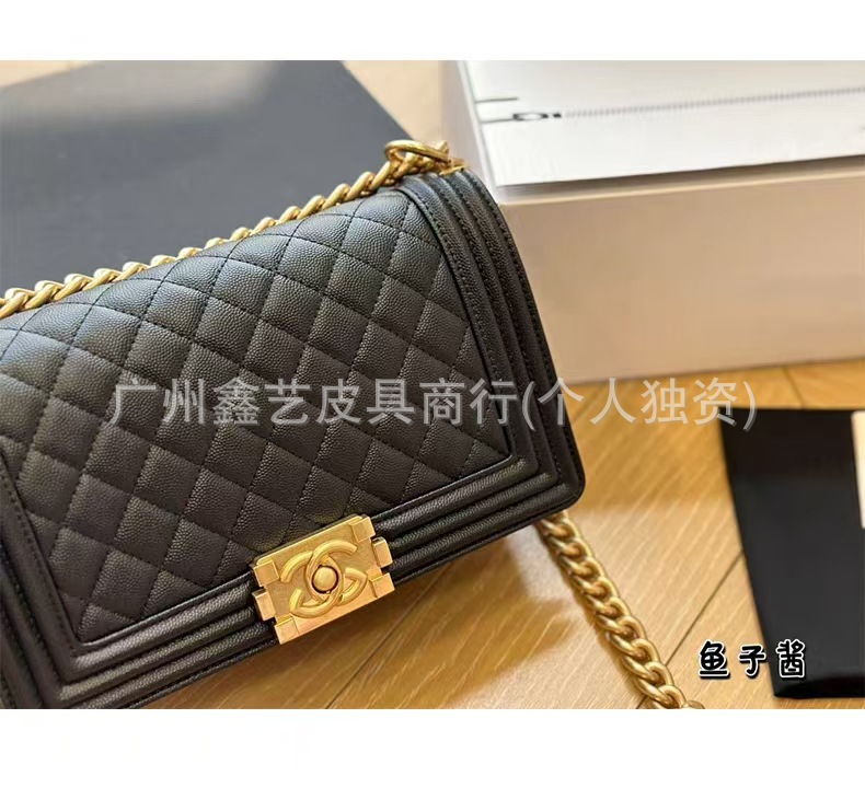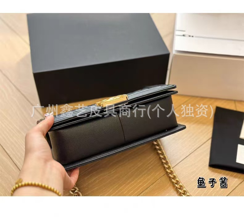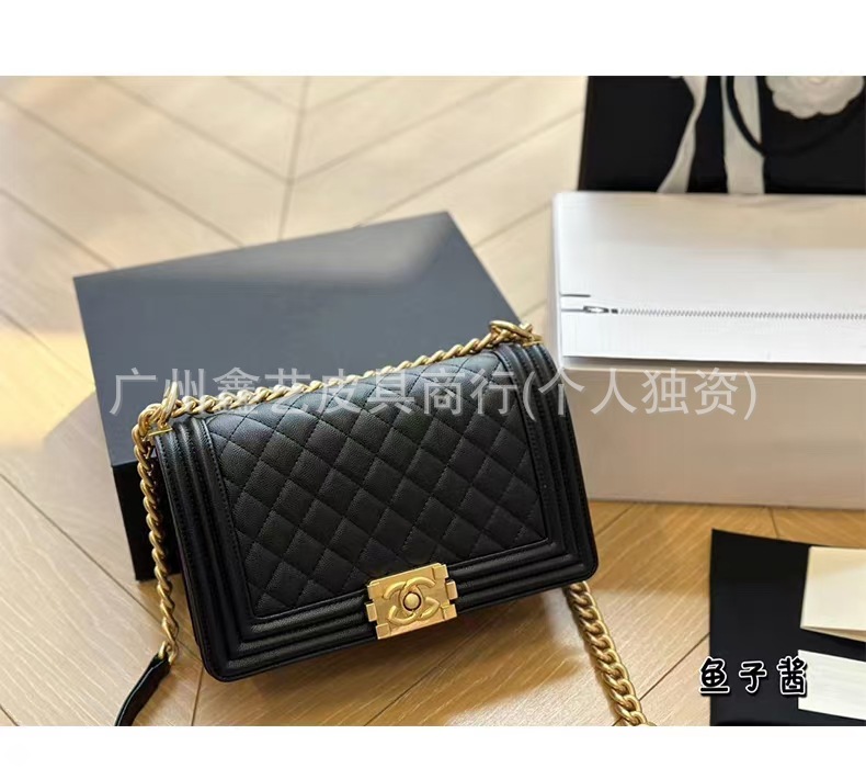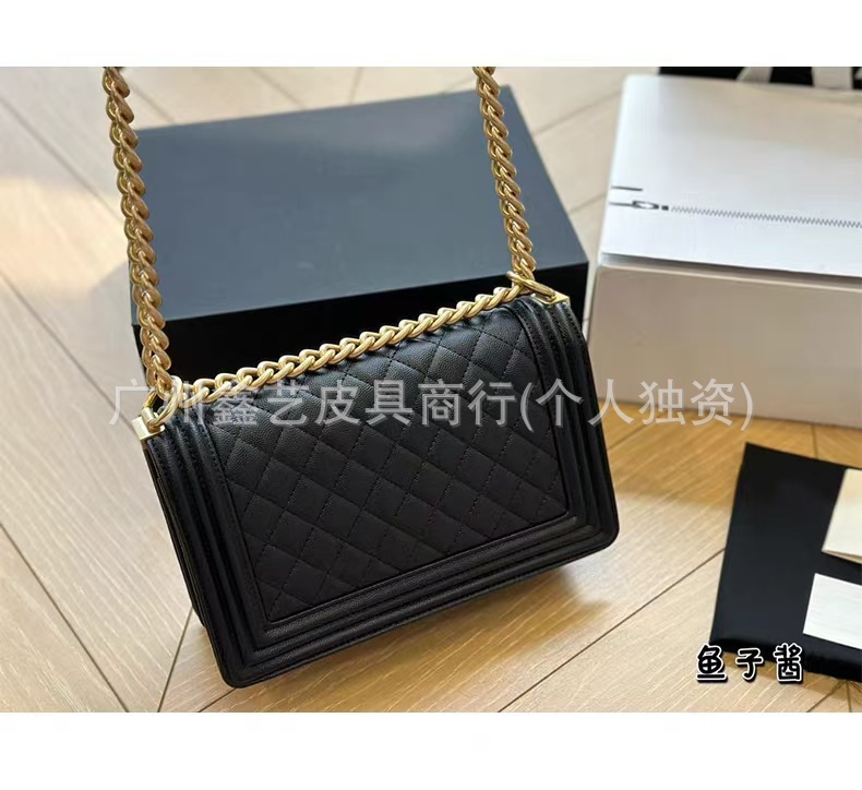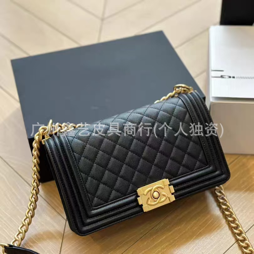 Wide Version of the Chanel-Style Quilted Le Boy Single-Shoulder Crossbody Chain Bag Made of Caviar Leather for Women, Quilted Chain Bag