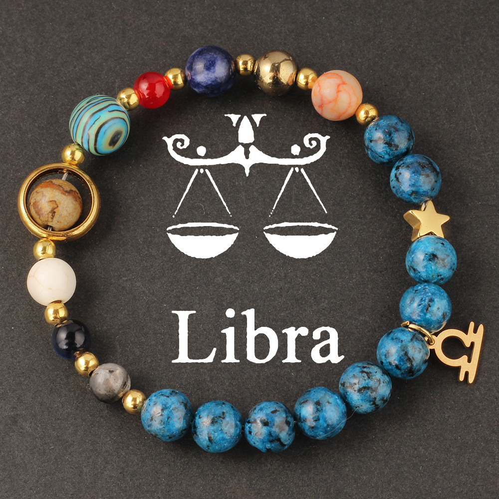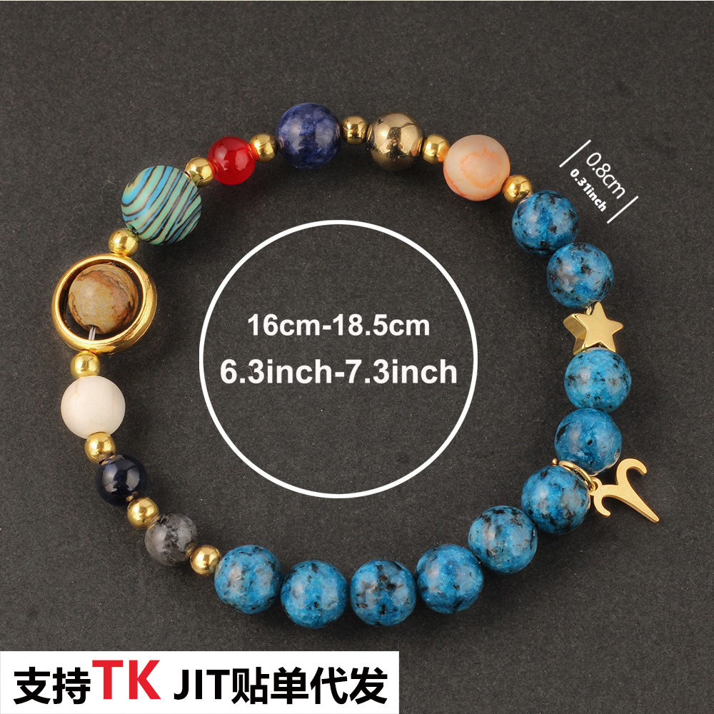Twelve Zodiac Signs Bracelet for Women Malachite Lapis Lazuli Blue Natural Stone Beaded Bracelet Planet Universe Ready Stock Wholesale
