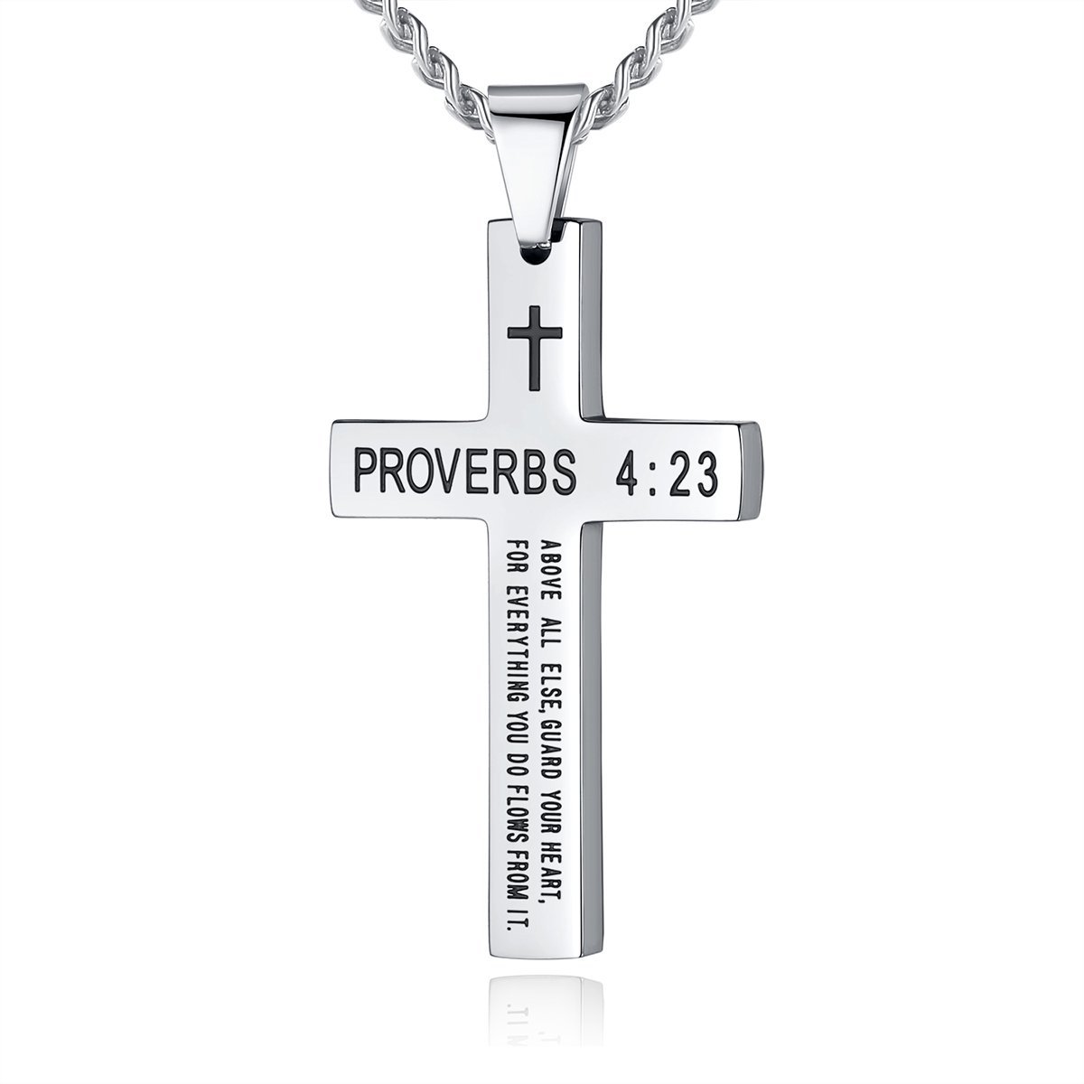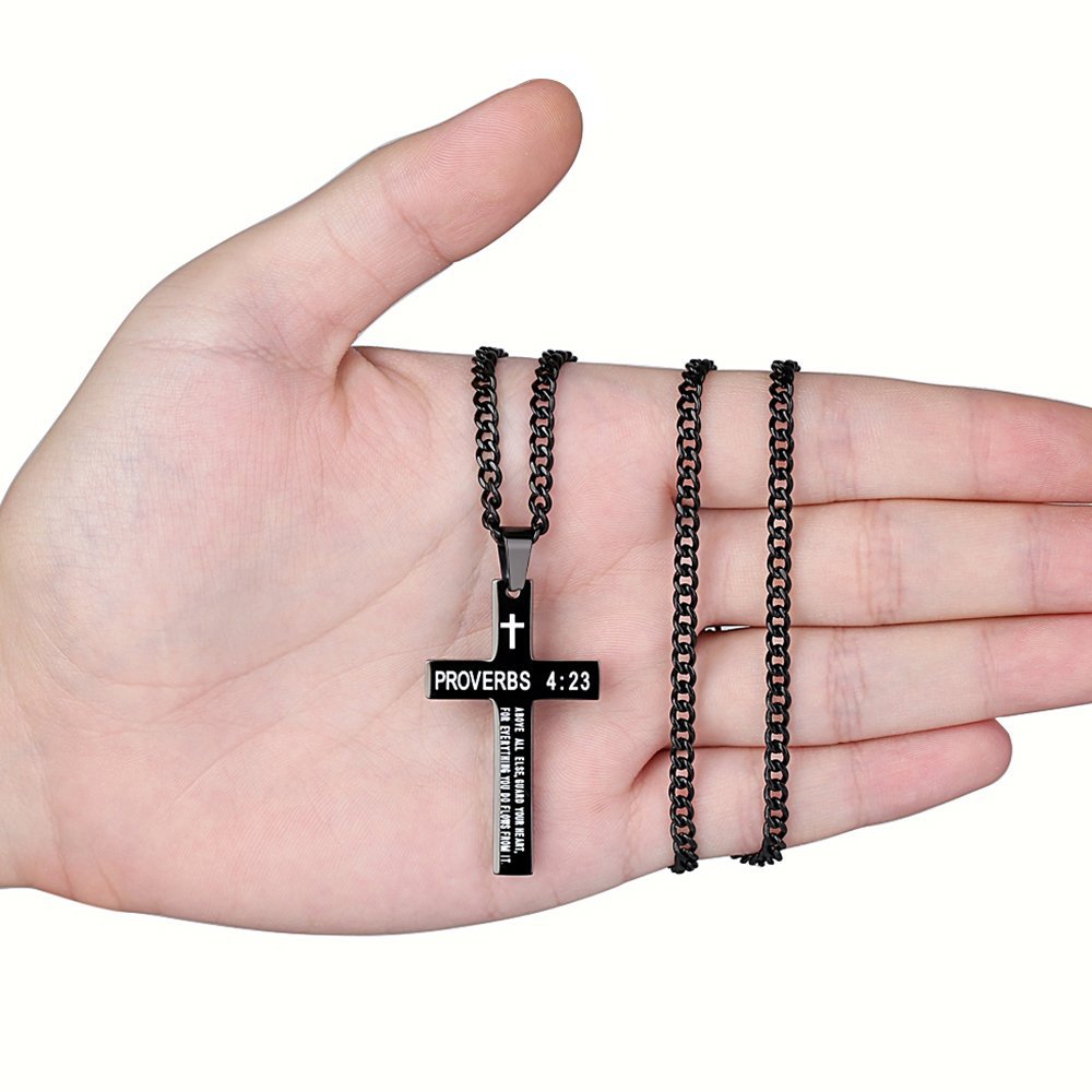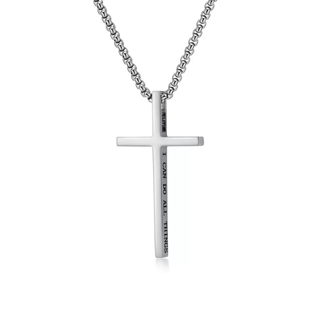 Color: Free engraving-steel color cross necklace