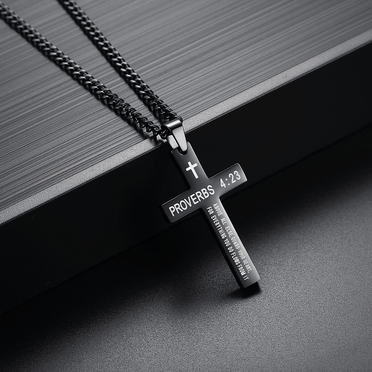 Color: Free engraving - black cross necklace