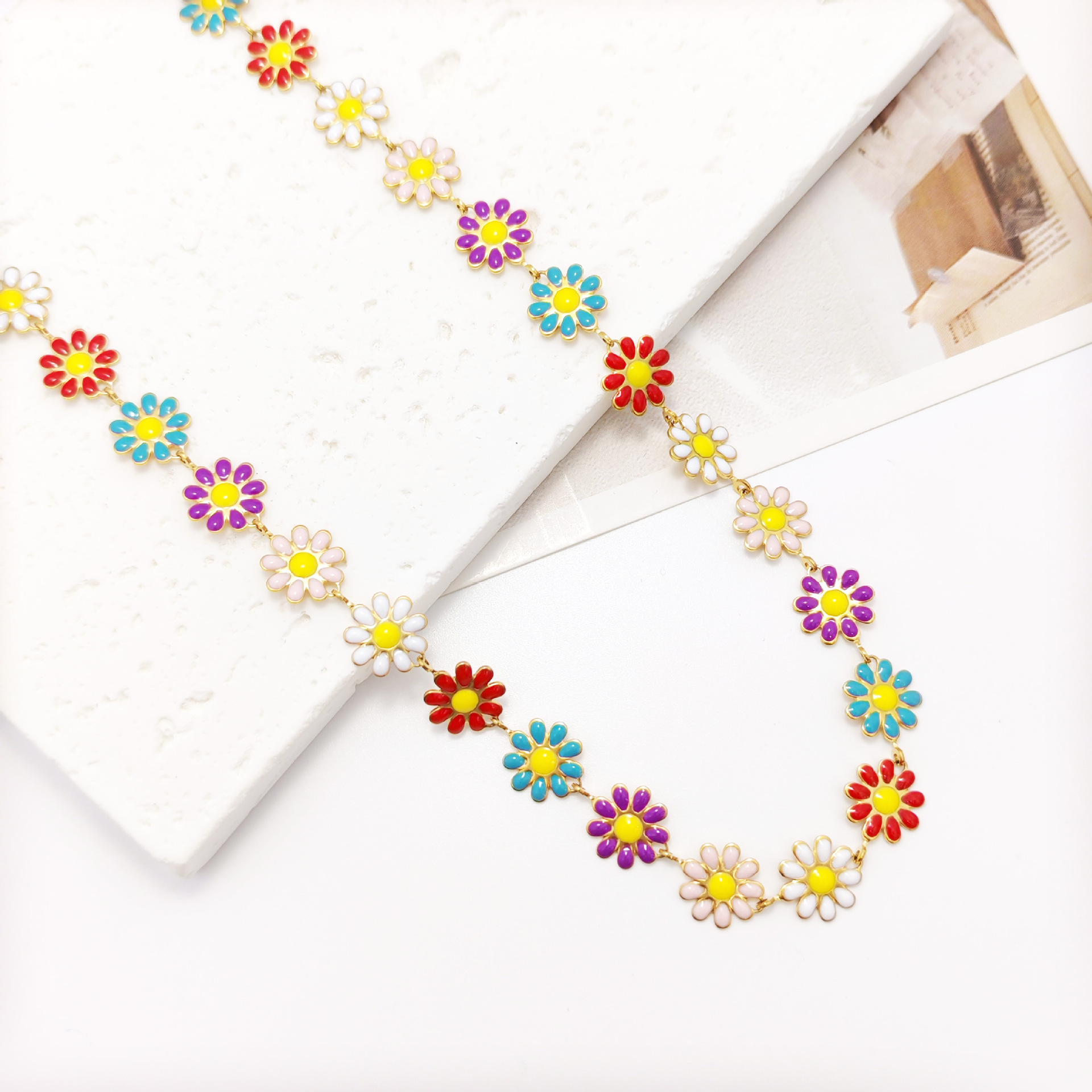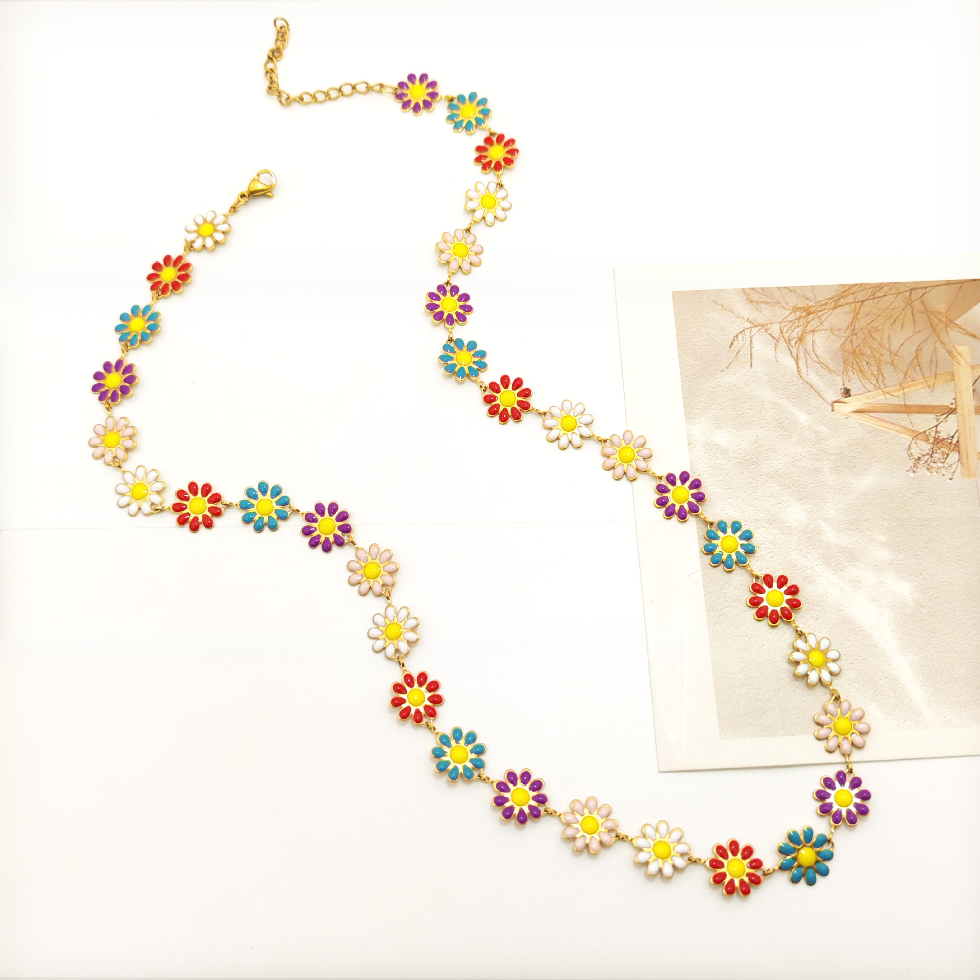 European and American New Fashion Daisy Oil Dropping Stainless Steel Bracelet Necklace suit Women Accessories Simple High-end Sense Wholesale