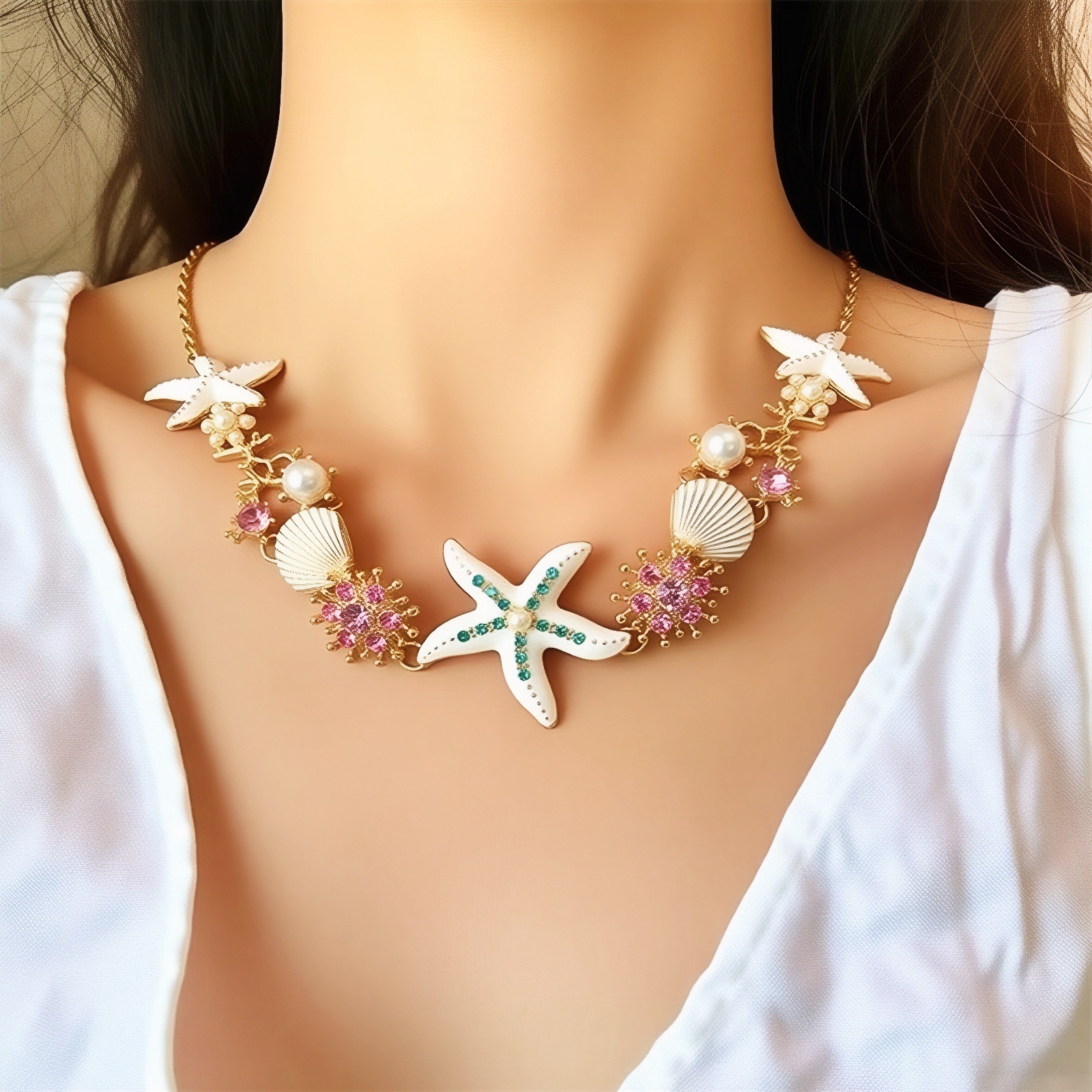 Color: Starfish white necklace chain