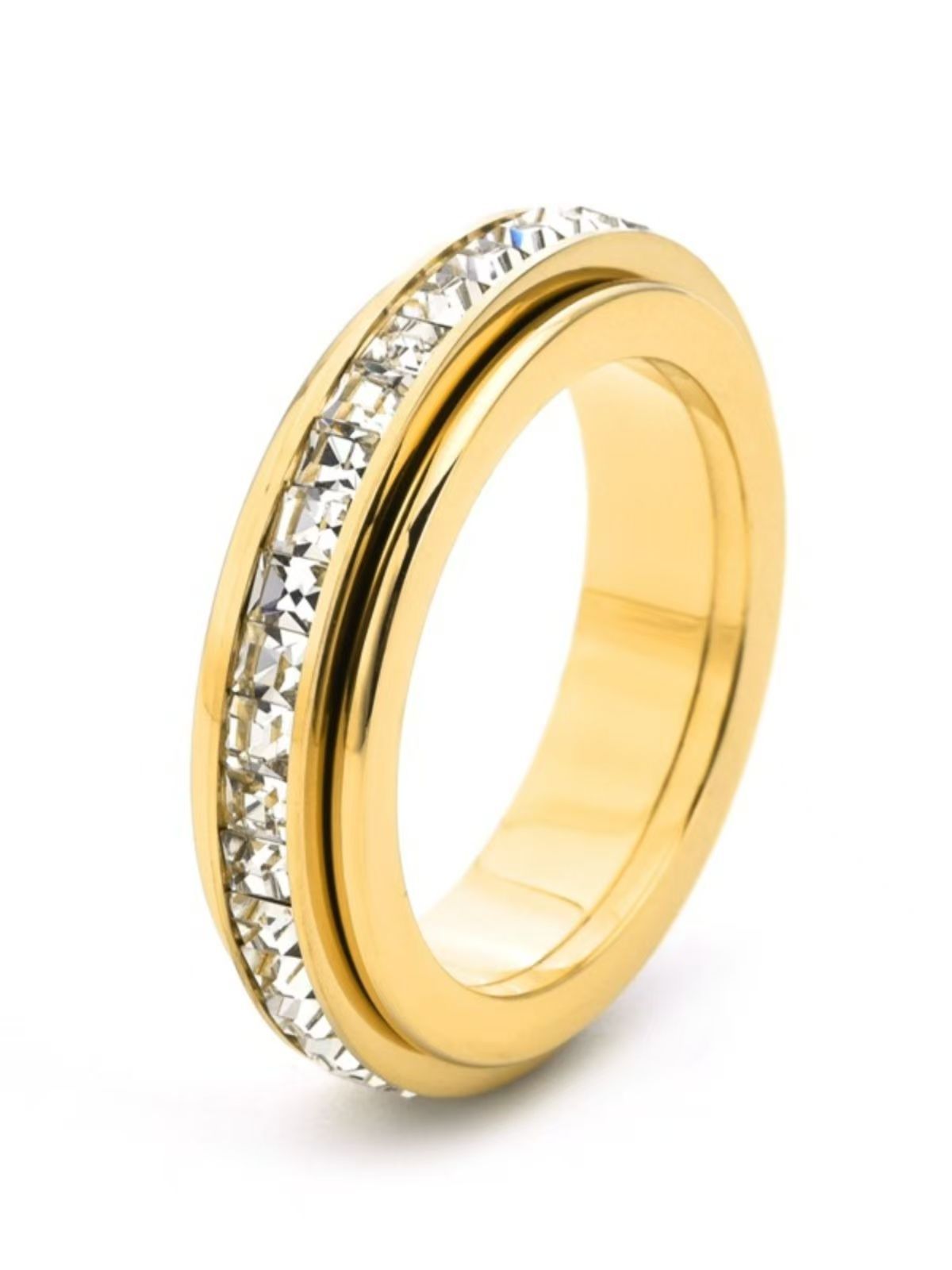 Trendy Minimalist Single-Row Diamond Rotating Jewelry Fashion Stainless Steel Starry Sky High-End Non-Fading Ring for Women