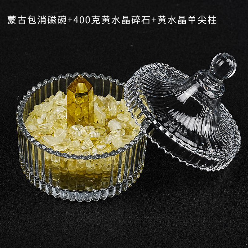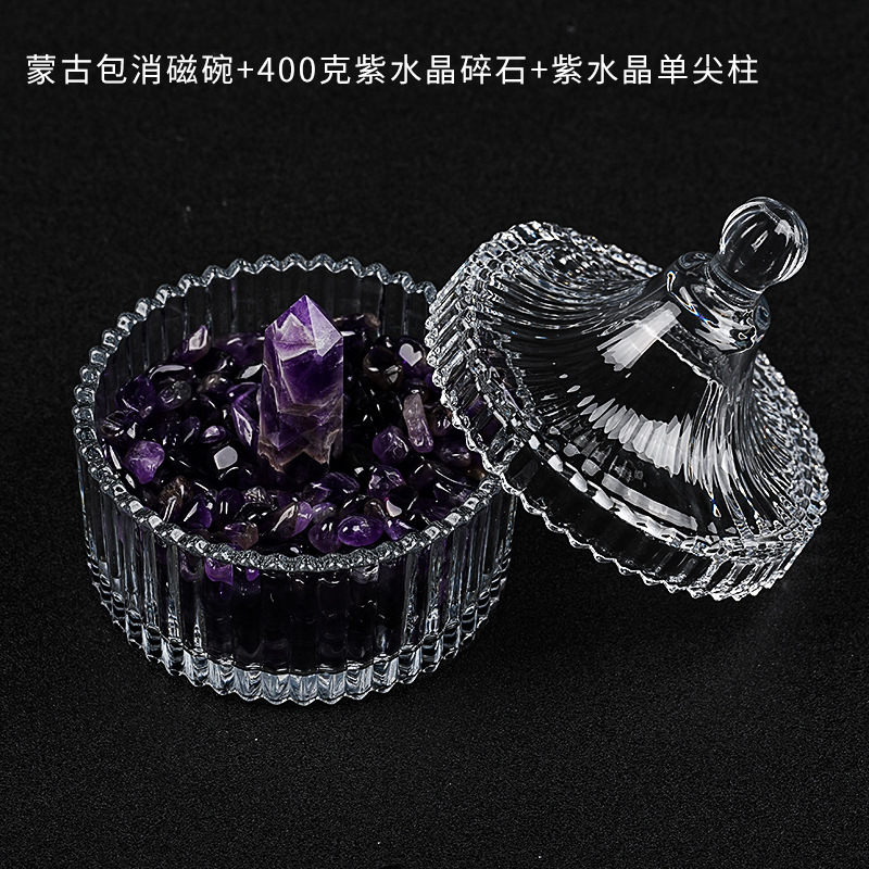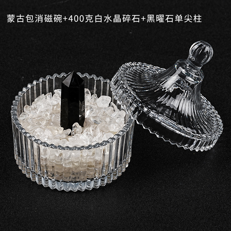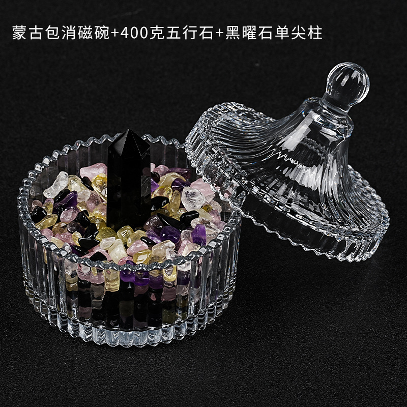 Purity: Mongolian yurt degaussing bowl + 400g five elements crystal + obsidian column