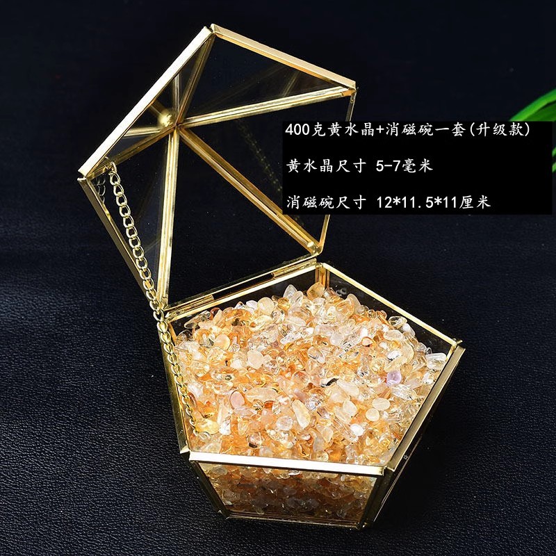 Purity: Golden hexagonal demagnetizing bowl + 400g citrine