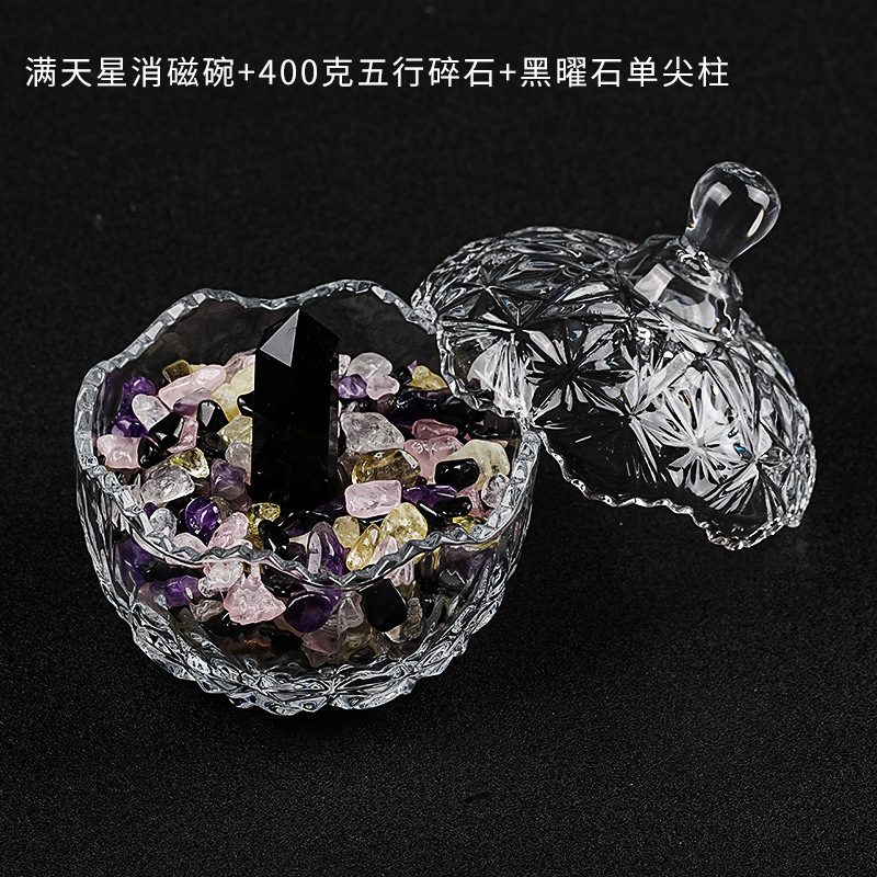 Purity: Gypsophila degaussing bowl + 400g five-element crystal + obsidian column