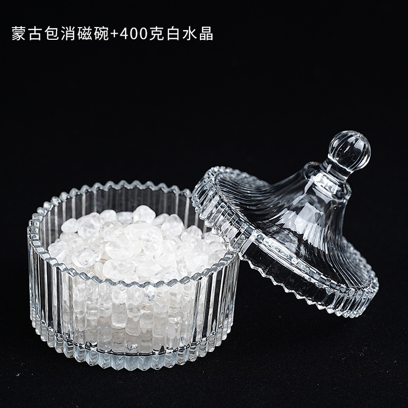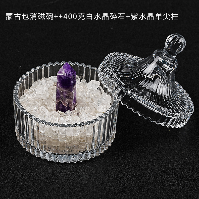 Purity: Mongolian yurt degaussing bowl + 400g white crystal + white crystal column