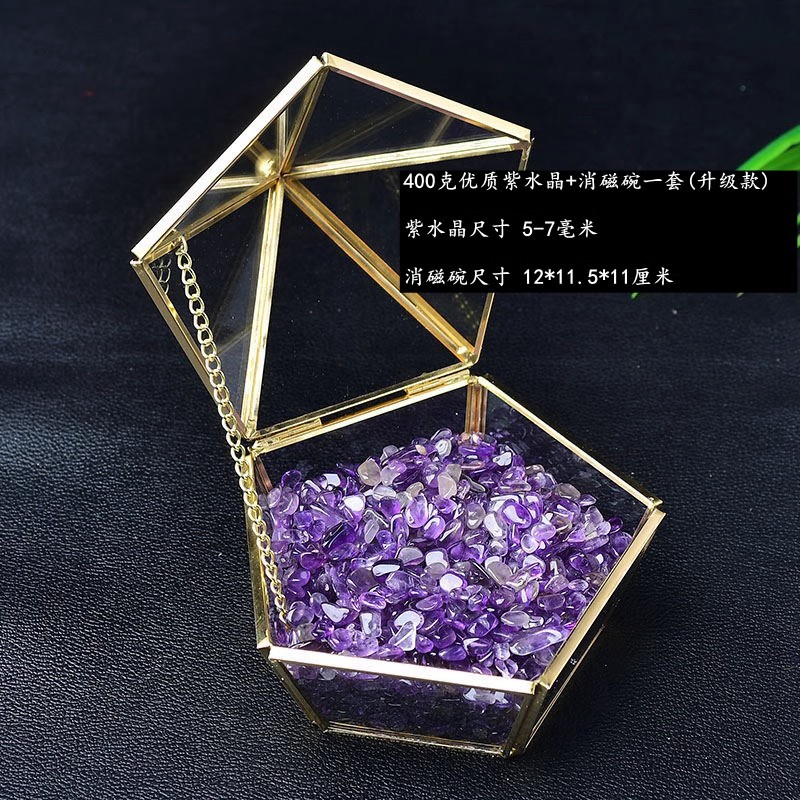 Purity: Golden hexagonal degaussing bowl + 400g amethyst