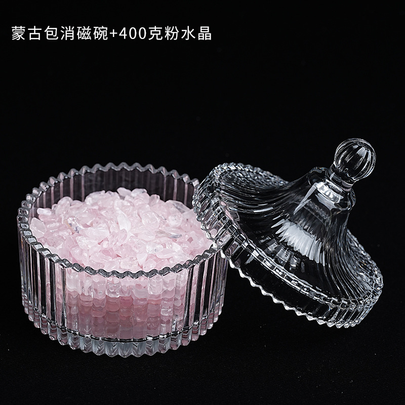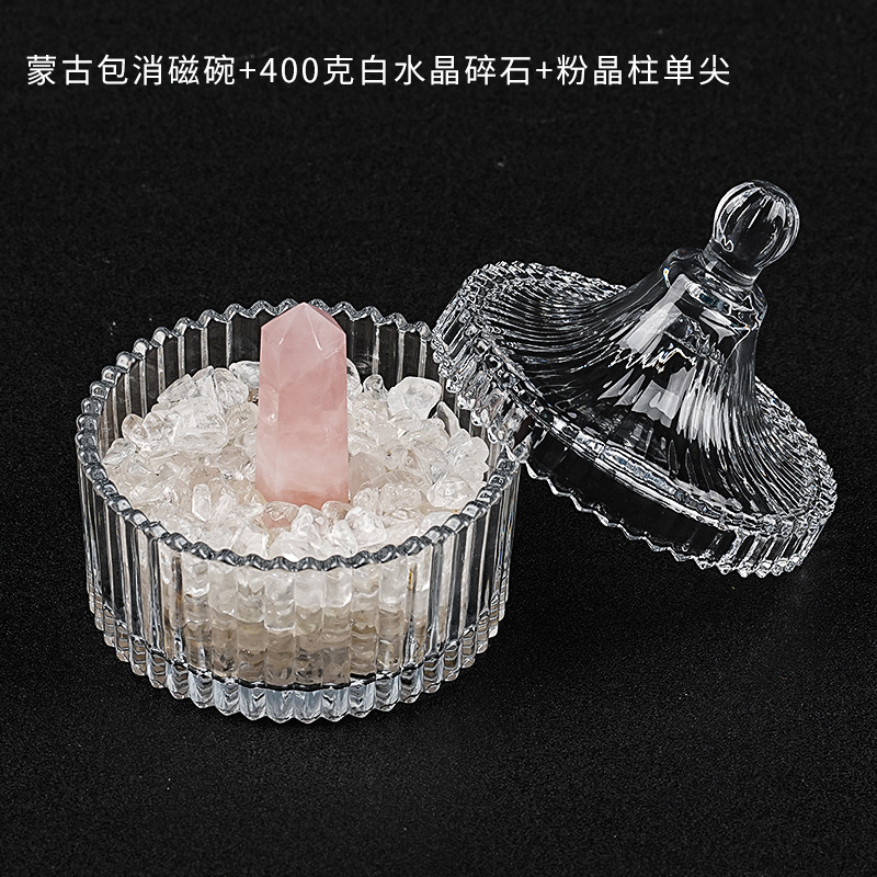 Purity: Mongolian yurt degaussing bowl + 400g pink crystal + pink crystal column