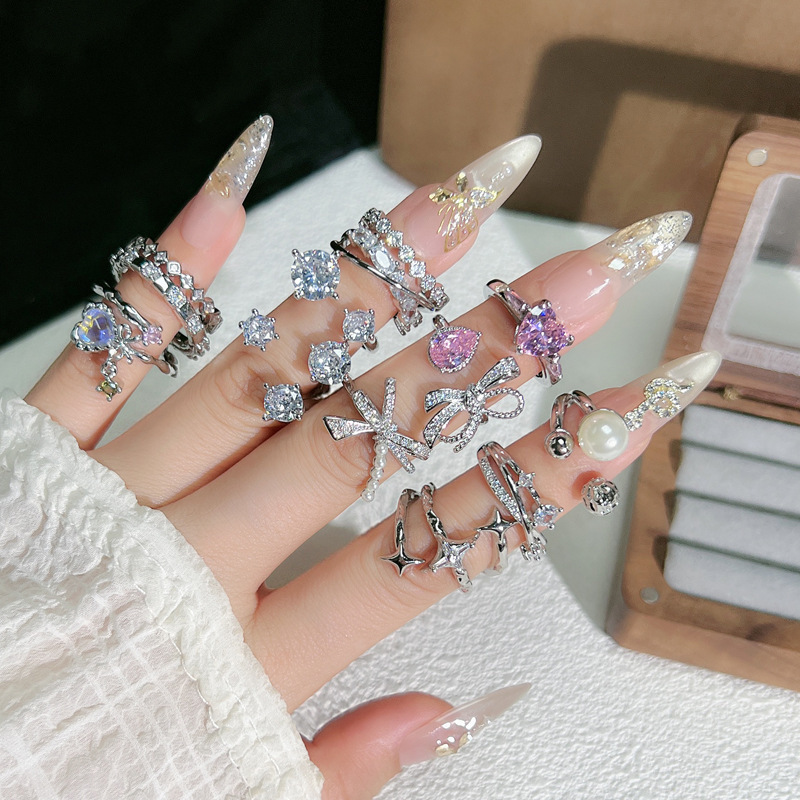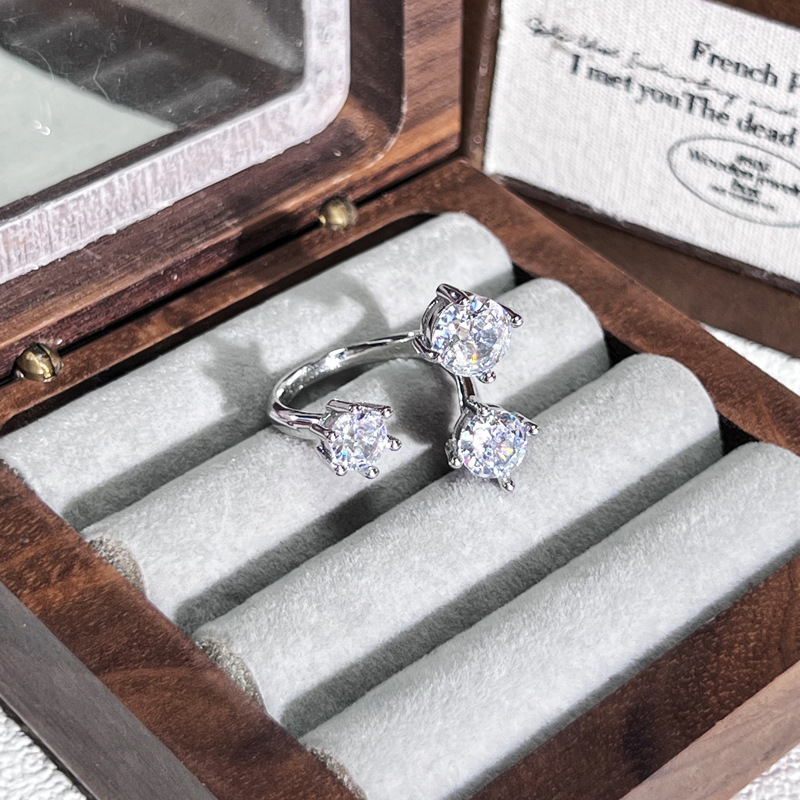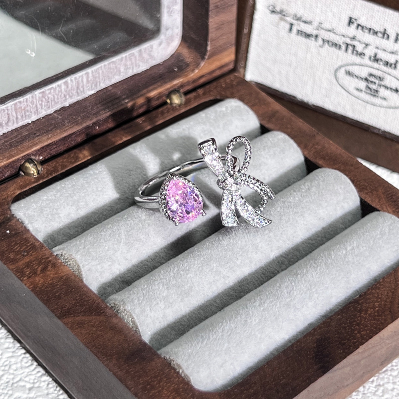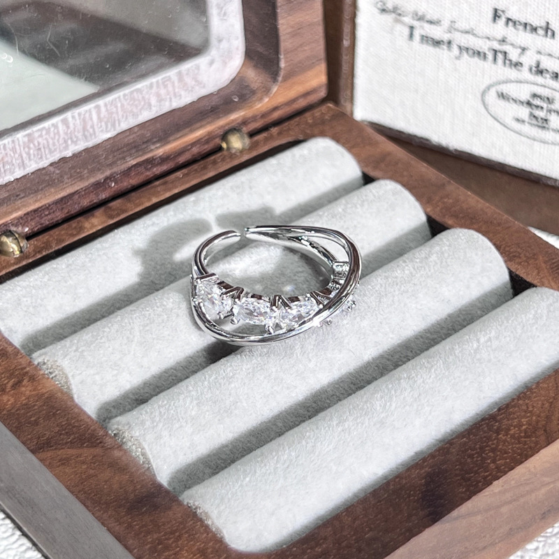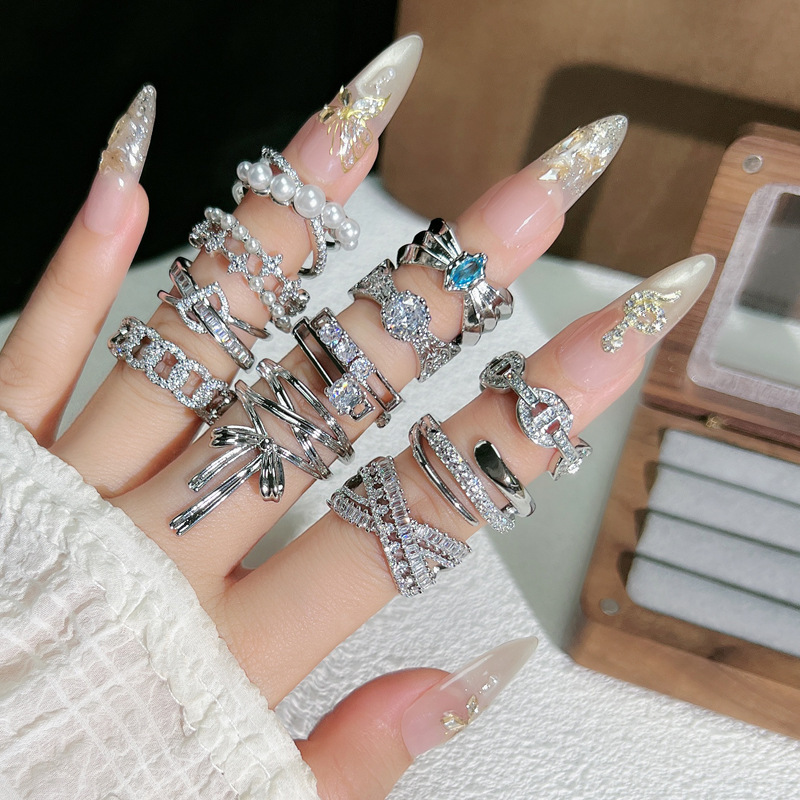 Exquisite Butterfly Light Luxury Korean Style Geometric Micro-inlaid Elegant Open Ring Women's High-end All-match Daily Best Friend Ring